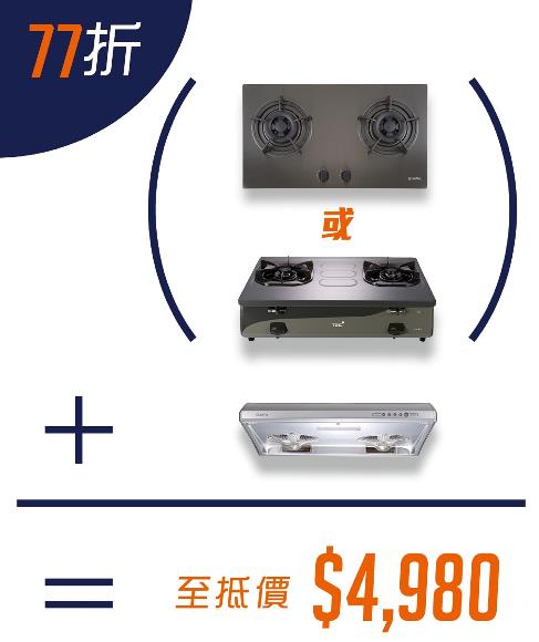 煤氣公司推出「1+1限時爐具組合」優惠,以至抵價HK$4980即可購入SIMPA不銹鋼面平面爐HZB62M或TGC火霸王26 RJ22加SIMPA抽油煙機 STR723DS,並額外送抽油煙機基本安裝(價值HK$380),最高可節省HK$1940,讓愛入廚者以折扣優惠買得心頭好,在家大展廚藝。
