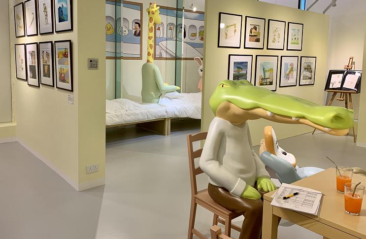 一樓是收費展覽廳,現正打造一場別開生面的住家參觀體驗,重現四個3D場景:2.5米高⻑頸鹿的睡房、Uncle同樹獺極慢「換⋯燈⋯膽⋯」的書房、方包正在做sit up與鱷魚高難度喝飲料的客廳,全館展出超過60幅Keigo全新畫作及手稿,同時發售逾100幅簽名版畫,值得粉絲珍藏!
