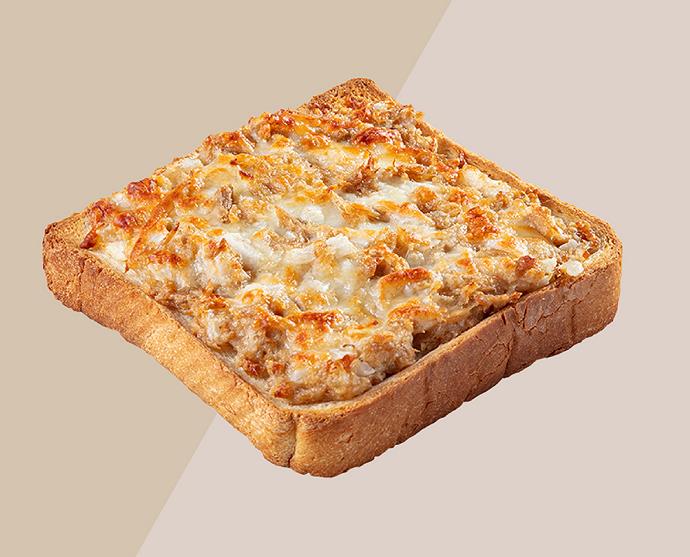 芝士吞拿魚吐司鋪滿吞拿魚蛋黃醬和芝士。