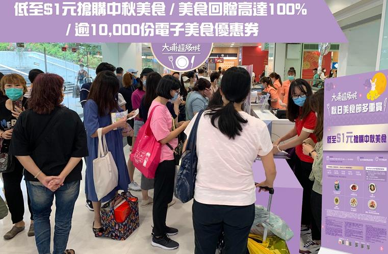 商場在9月13至10月31日舉行秋日美食節,搜羅多款潮物舉行折扣優惠,包括會員有機會以低至$1換購中秋禮籃、人氣月餅、即食鮑魚及潮流電器等。超抵優惠還有低至1折$10優惠價購買「有營美食券」,即場享用多款健康菜餚。會員以電子消費滿$3000(最多累計2張不同商戶電子貨幣發票),即可換領「Häagen-Dazs星.明月 (四件裝)月餅禮盒」一盒,數量有限,先到先得。