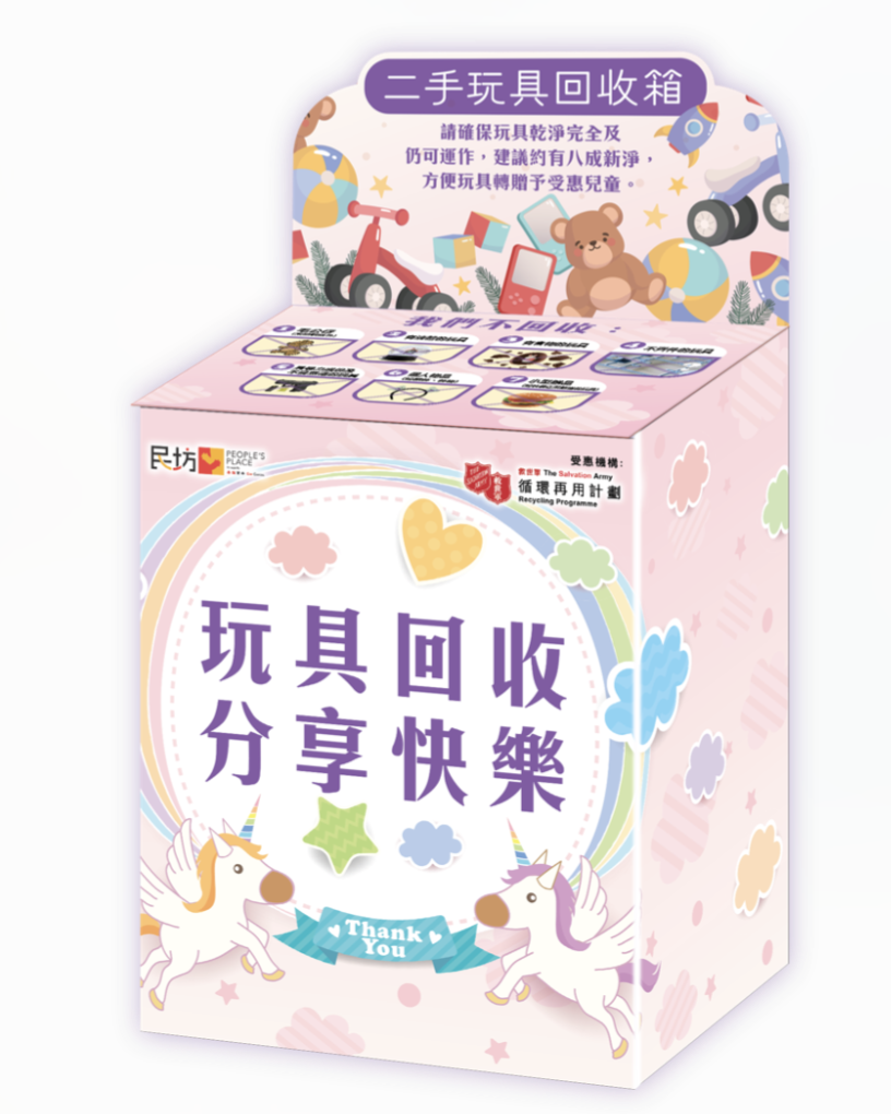 小朋友可把多出的玩具投到商場內的玩具回收箱,參加「救世軍環保玩具回收計劃」。