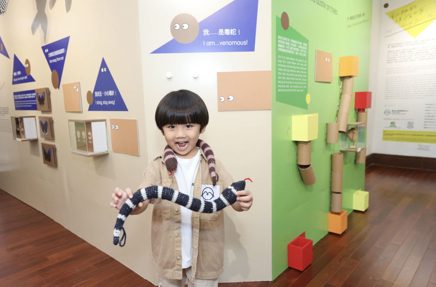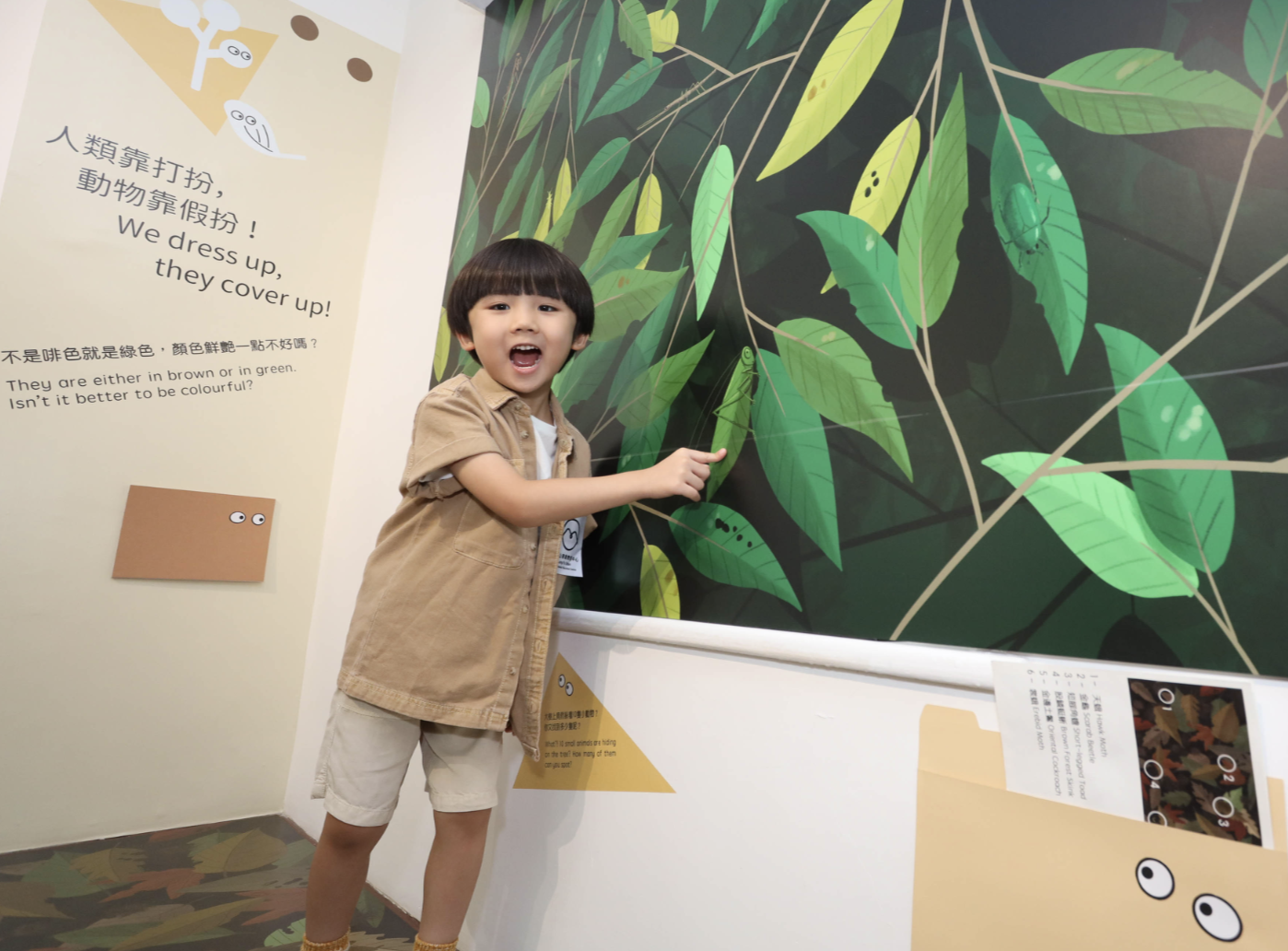 不少動物擁有與環境顏色相似的「保護色」,可以隱身大自然中躲避敵人。小朋友可在展區中尋找隱藏的小動物。看看能找到多少隻?