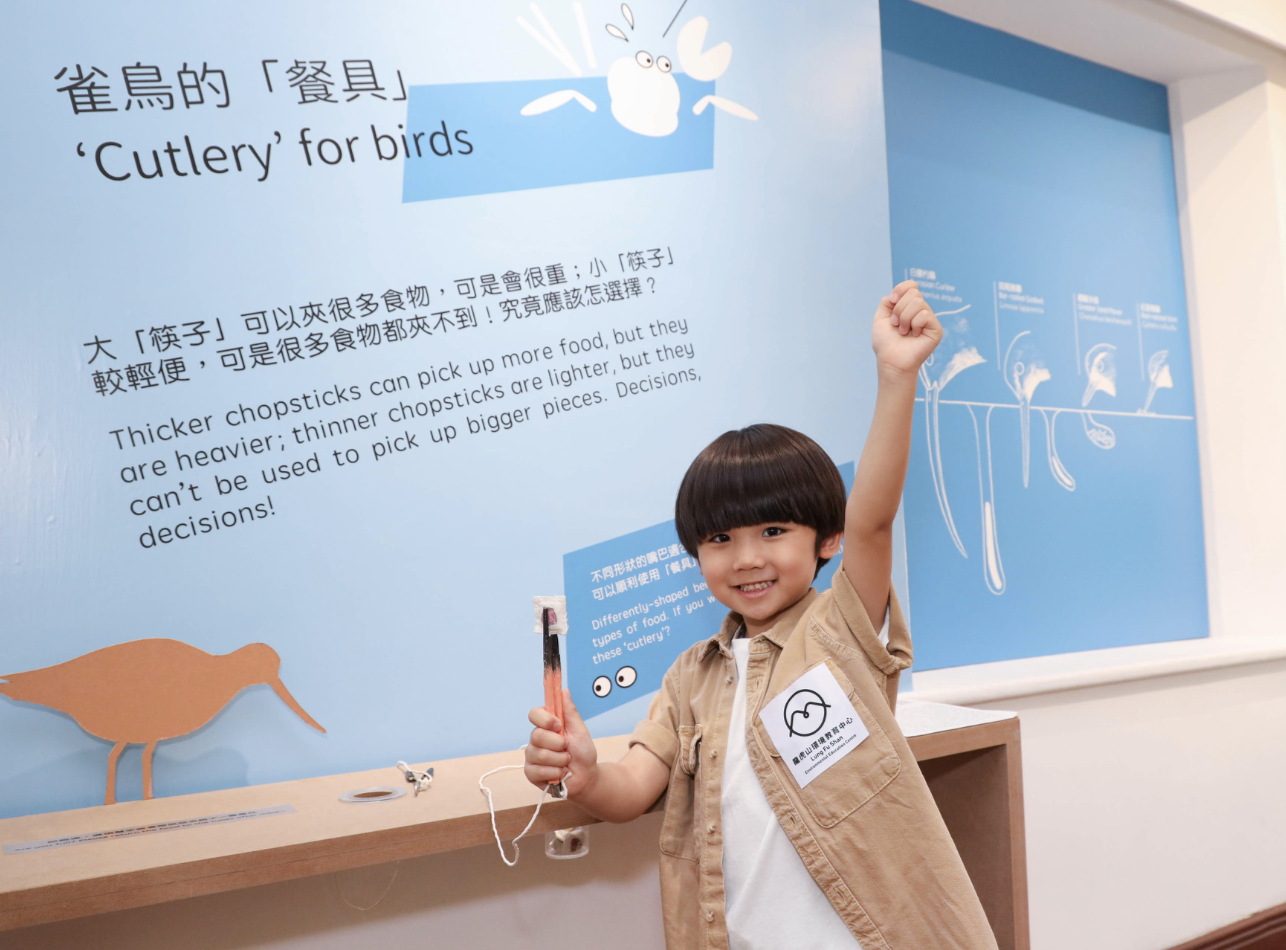 雀鳥的嘴巴稱為鳥喙,因應習性和居住環境,演變出不同形狀、長度和特徵。小朋友可以用模仿不同鳥喙的鉗,將放在樽內的「食物」夾出來,體驗不同鳥喙的進食之苦。