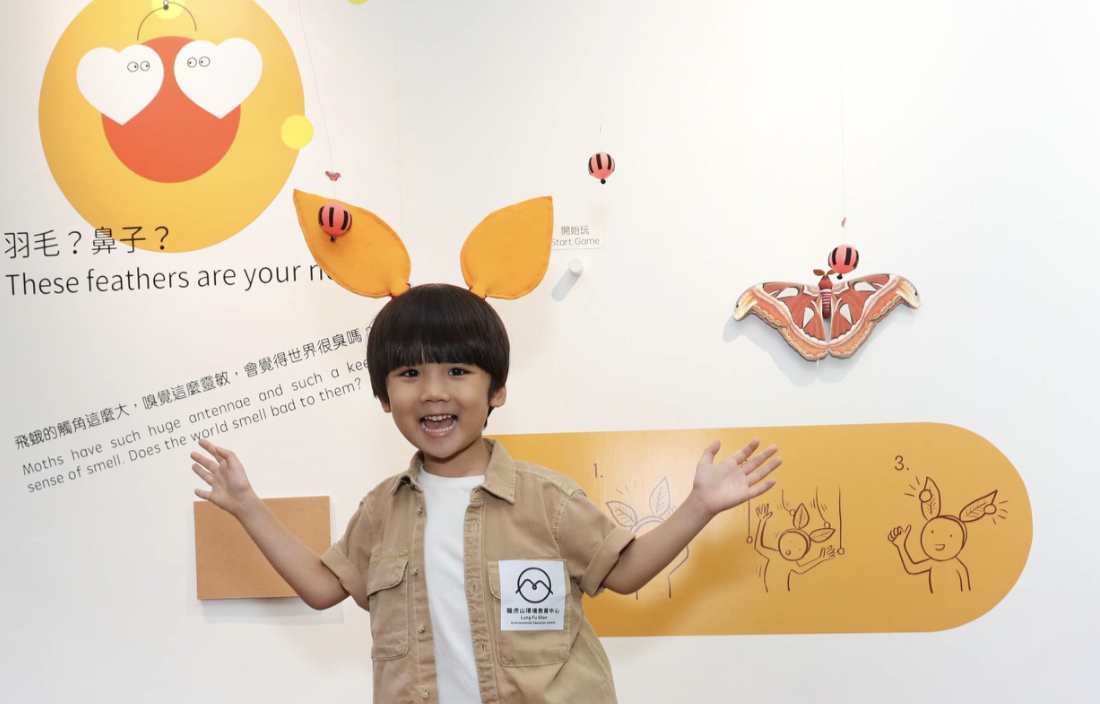 飛蛾的觸角有如加強版的鼻子,能偵測空中的氣味,以掌握周遭環境的狀況。小朋友可戴上「觸角」頭飾,看看能黏到多少「氣味」球?
