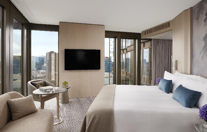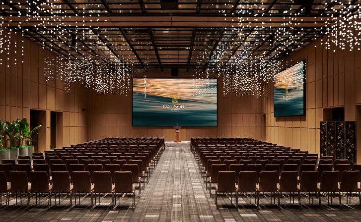 酒店亦提供專門健身樓層,包括18.5米的無邊際游泳池、治療室、放鬆艙、24小時高性能健身房、靜觀工作坊、桑拿房、蒸汽房及酒廊,同時還有10個會議場所,包括擁有先進設備及技術的太平洋宴會廳,可同時容納400名客人。