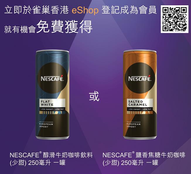 即場登記成為品牌HK eShop會員,更會送歐洲進口全新醇滑牛奶咖啡飲料(少甜)或鹽香焦糖牛奶咖啡(少甜) 250毫升一罐,咖啡迷切勿錯過!(記者:雲遜)
