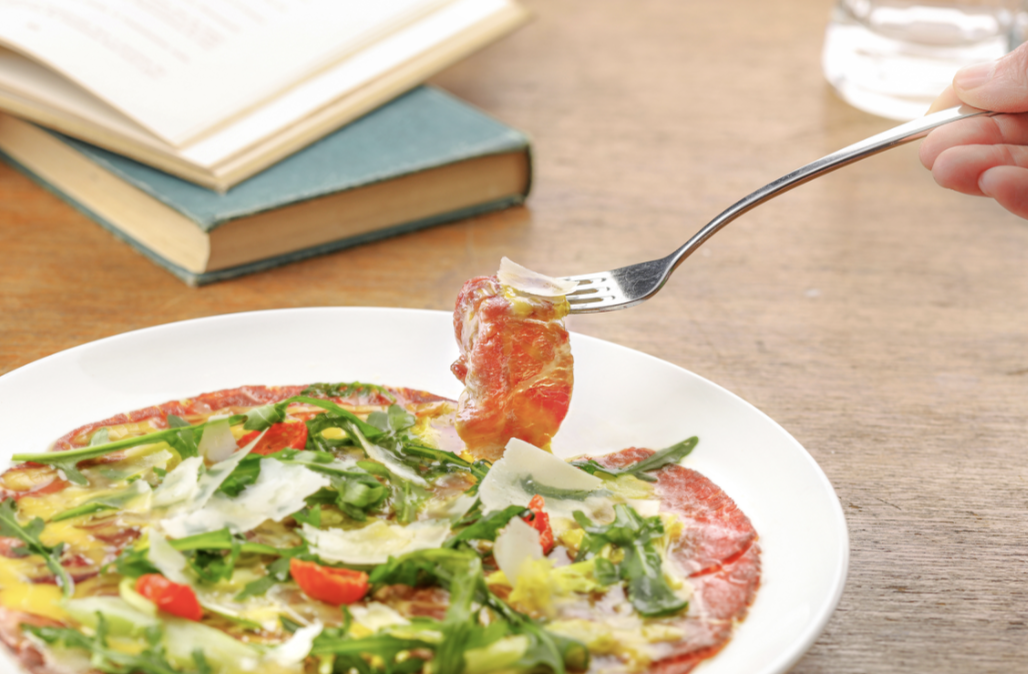 意式生和牛薄片,加上巴馬臣芝士、火箭菜及初榨橄欖油。