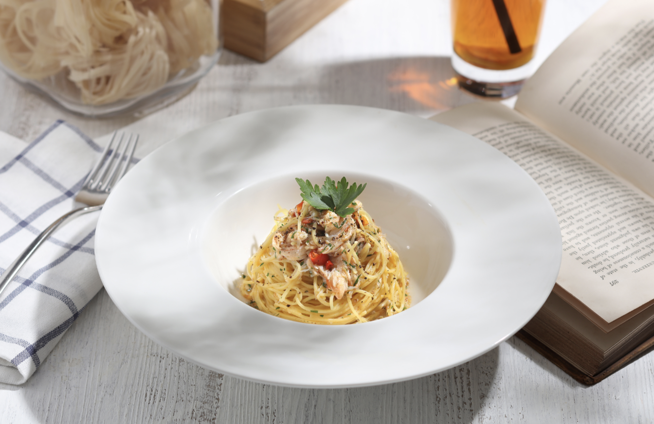 廚師團隊將多道招牌菜式結集成四道菜的超值二人套餐,頭盤可選軟嫩濃香的意式生和牛薄片或意式前菜拼盤;第二道菜可選橄欖油香蒜蟹肉全蛋麵或野菌意大利飯;主菜方面,則有香烤北美豬扒或是日精選烤魚配海鮮;最後的甜品三重奏,可品嘗招牌意大利芝士蛋糕、焦糖奶凍及精選雪葩。