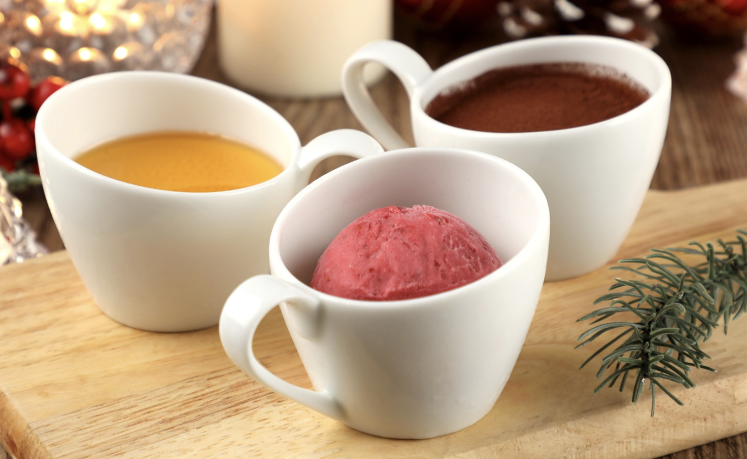 甜品三重奏包括意大利芝士蛋糕、焦糖奶凍及精選雪葩。