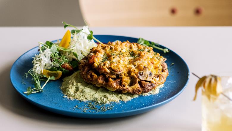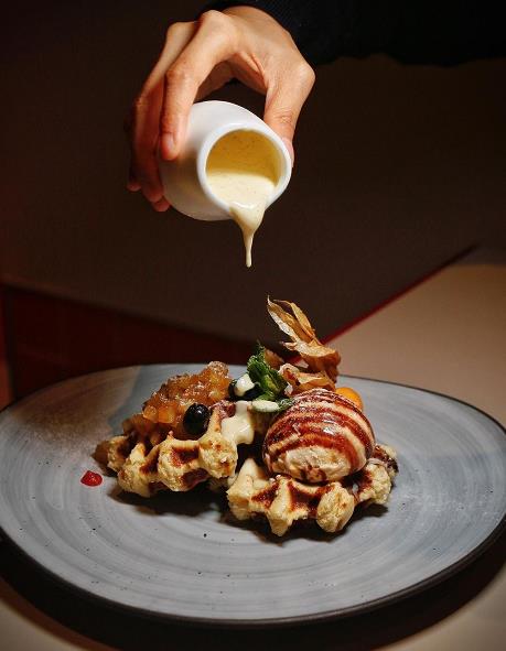 窩夫(Waffle)源自比利時,在甜品店經常能找到這款美點,隨着這道美食傳到其他國家,不同製法及吃法亦相繼出現。位於Ocean PopWalk海天晉滙的「Griddy's」提供12款不同口味的窩夫,製法參考比利時Liège窩夫的做法,由類似麵團的厚麵糊烘焗而成,麵團需約1小時發酵。店內窩夫分為鹹、甜兩類,鹹食Focaccia窩夫加入迷迭香、百里香、海鹽和紅蔥頭絲,適合配搭西式美食;甜食Liège窩夫麵團加入傳統的珍珠糖粒,烘成後表面焦香,外脆內軟,推廣期間凡惠顧午市套餐加$48可換多一份窩夫。除窩夫外,餐廳亦供應其他意法美食,例如鵝肝配紅酒蘋果、香煎比目魚等。