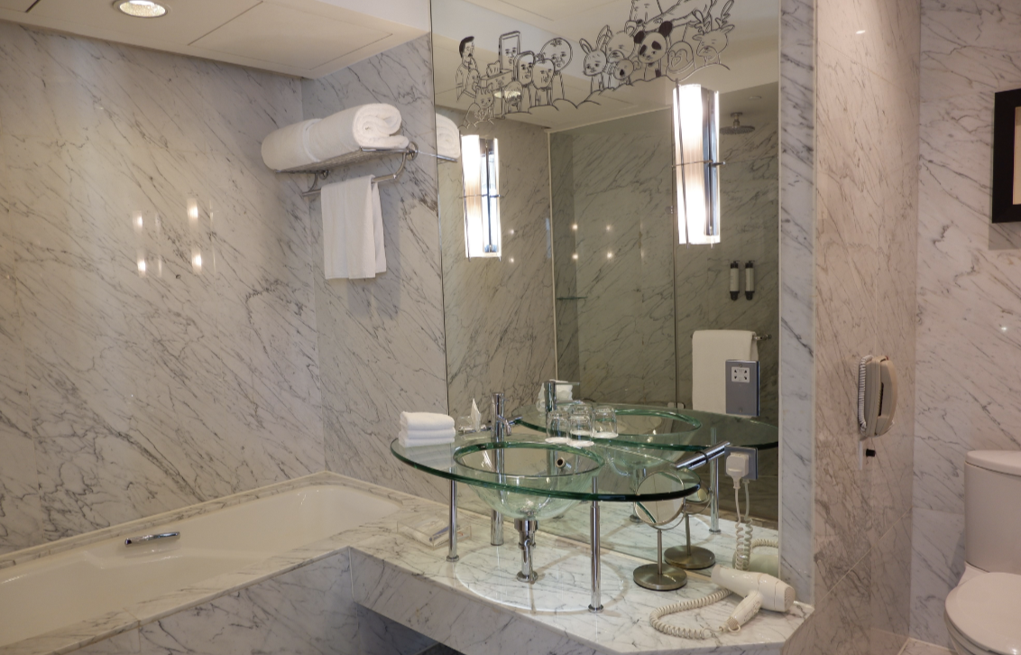 全景商務客房有巨型鱷魚抱枕及雲石浴室。