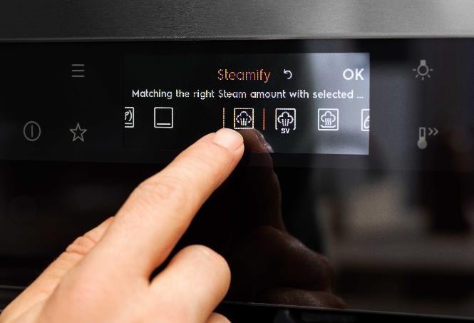 SteamPro蒸焗爐配備Steamify功能,用家可透過輕觸式熒幕調節溫度,系統顯示出該溫度下以蒸氣烹調的煮食選項並自動調節蒸氣量,與傳統熱力煮食功能結合,如烤焗、烘焙等,既能維持鬆脆的食物外層,又能保留食物原有水分及口感。用戶在選擇溫度後,蒸焗爐即會自行預熱,無須再設定預熱時間,操作方便。