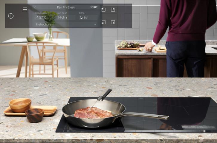 SensePro嵌入式電磁爐設有4個煮食區,配上智能無線食物探針,以無線無電池操作,連接電磁爐系統,為用家精準測量食物內部溫度,誤差微細至攝氏1度。用家可預先設定理想溫度,當到達指定溫度,電磁爐會自動發出提示,避免過度烹煮,輕鬆炮製出色香味俱全的佳餚。(記者:Haye)