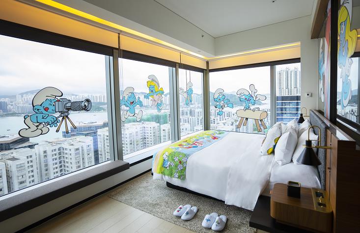 藍精靈家族出沒注意!Klook與東隅酒店首度聯乘推出全港首個藍精靈主題Staycation——「藍精靈.十分勁」。酒店入口、大堂及房間內皆可以見到藍精靈家族的蹤影,而藍精靈主題客房內的特色布置則有主題抱枕及多個主角的玻璃窗貼紙等!城市或海景精選客房的兩邊設有落地大玻璃窗,加上可愛又活潑的藍精靈裝飾,想必是打卡的好地方!