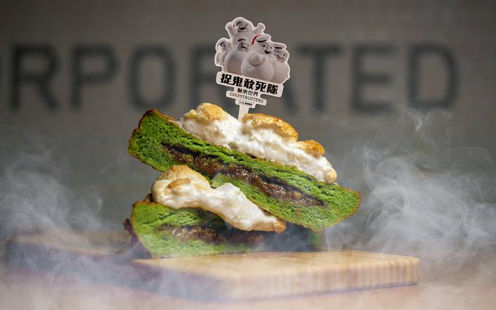 靈感來自電影內的迷你棉花糖怪,香脆可口的綠色西多士鋪滿烤過的香甜棉花糖,搭上焦糖香蕉夾心,這個極邪惡的配搭令人難以抗拒。