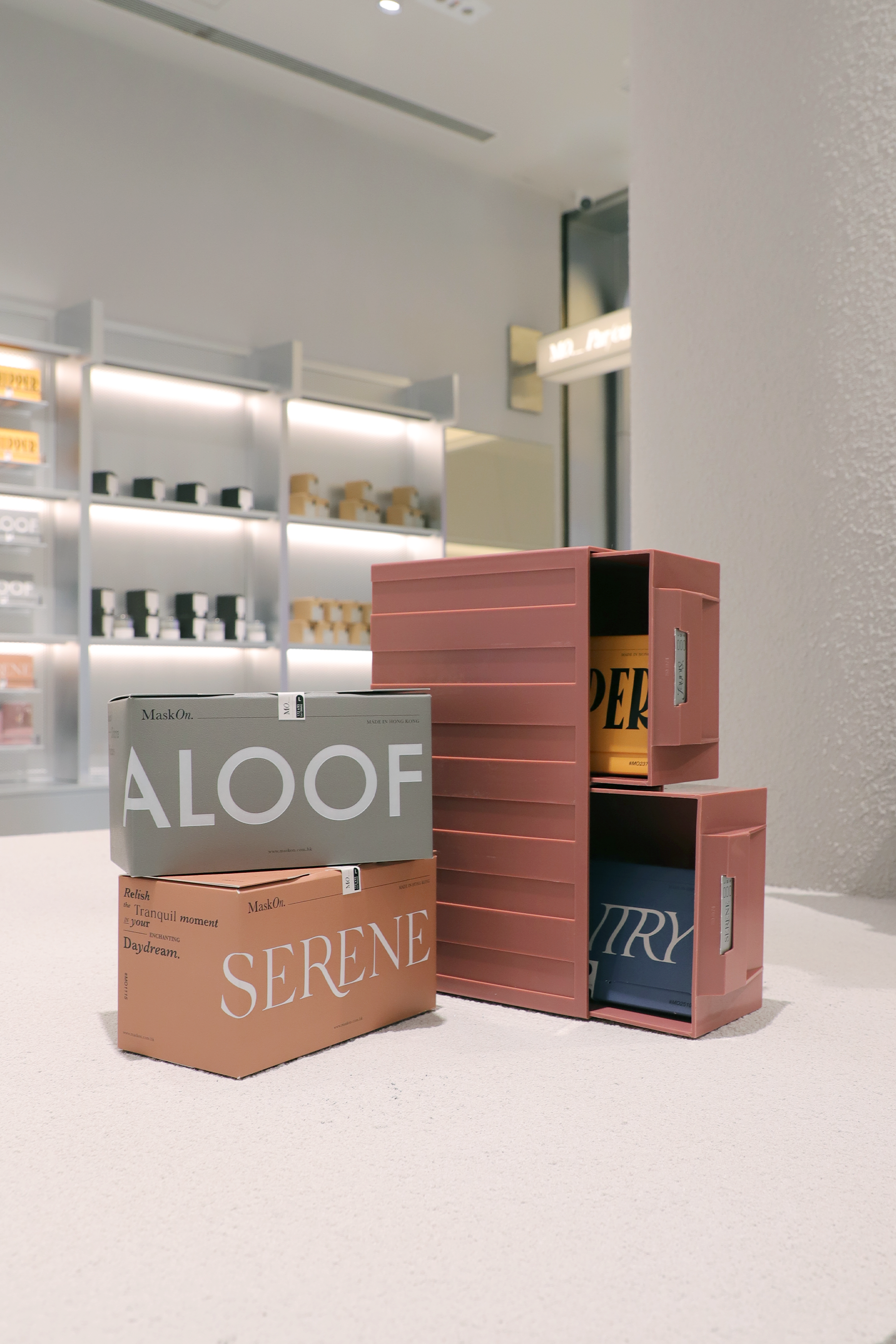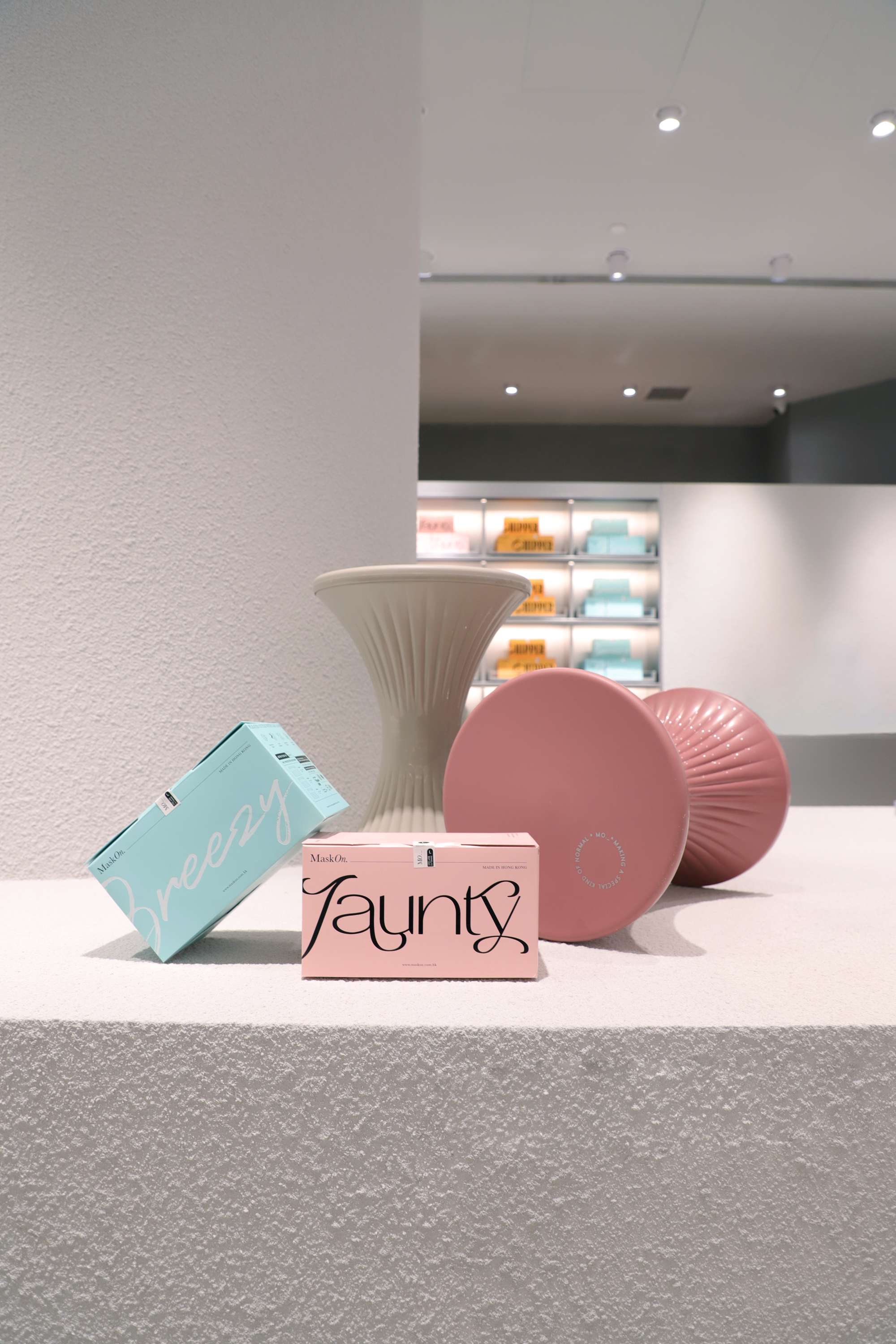 概念店貫徹品牌簡約時尚風格,以淺灰色為主,配合不同深淺的灰,時尚而不單調。店內除有新推出的常規色調淺白「Dawn」和深刻「Dusk」口罩外,還有一系列全新生活用物,包括本土護膚品牌factiv調配、高效保濕透明質酸、備有隨身裝和家用裝的MO Hydra+獨特香味酒精搓手液;由香港紙品藝術設計公司Papery設計的四色口罩套,防護同時不失優雅;輕巧型格的時尚雙色tote bag,集美學及實用性於一身;及為迎合近期流行的Staycation,設計出一次性座椅套和床品套裝等。