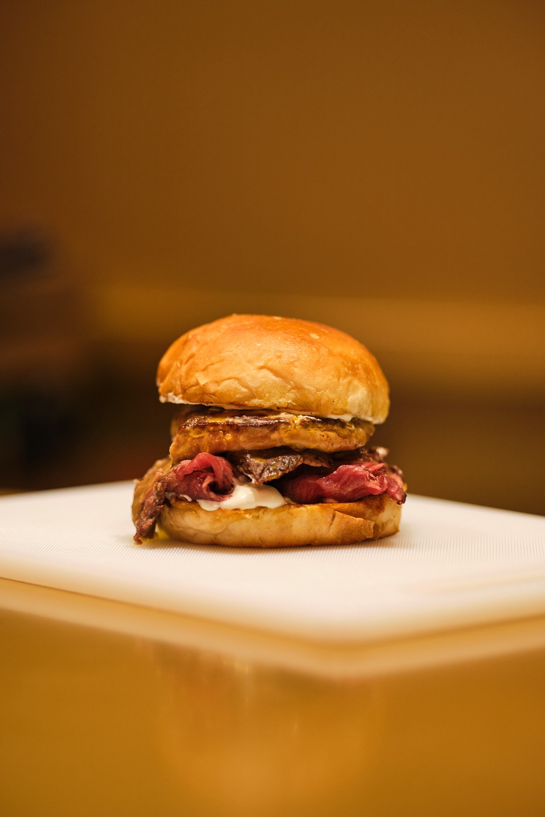 入口即能看見璀璨的金光拱門,拱門由20位工匠耗逾1500小時打造,內裏及拱門兩邊匯集超過20個國際及本地飲食、手工藝與生活品牌攤位,有不同領域的匠人工藝。美食方面,筆者推介Honbo為市集獨家供應的鵝肝牛肉漢堡,寒冷的天氣下品嘗肉汁滿瀉的漢堡,再適合不過。此外,還有由法國庇里牛斯山放養的鴨子所製成的Maison Argaud 罐裝半熟鴨肝醬、Binge Drinking Club & Daap(即粵音「嗒」)打造時令的聖誕香料熱紅酒及生牛肉卷、Baking Manic的朱古力特飲和棒棒糖蛋糕及Fernet Hunter於香港入瓶的香辣蘋果酒。