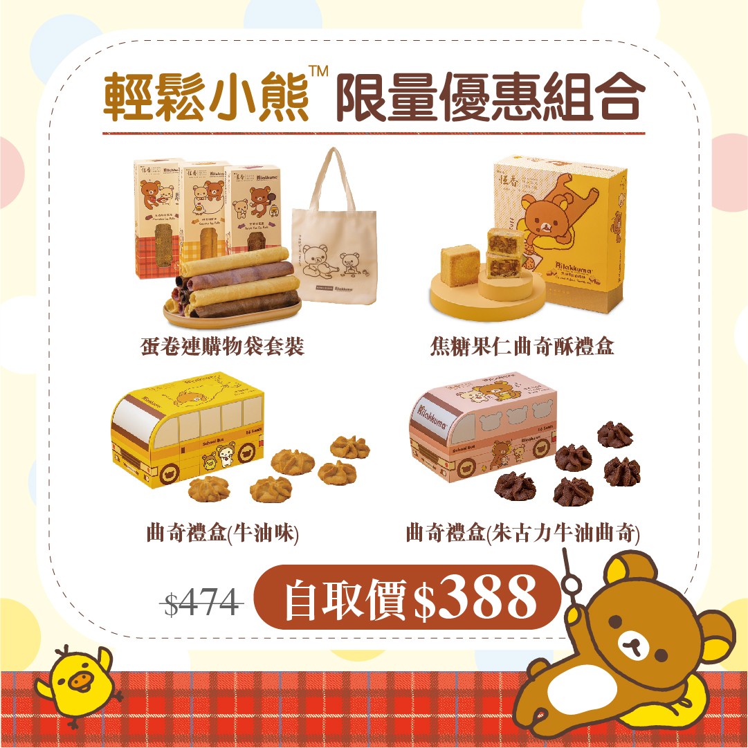 每購買一套三盒的恆香x輕鬆小熊蛋卷便可獲贈「輕鬆小熊購物袋」一個。