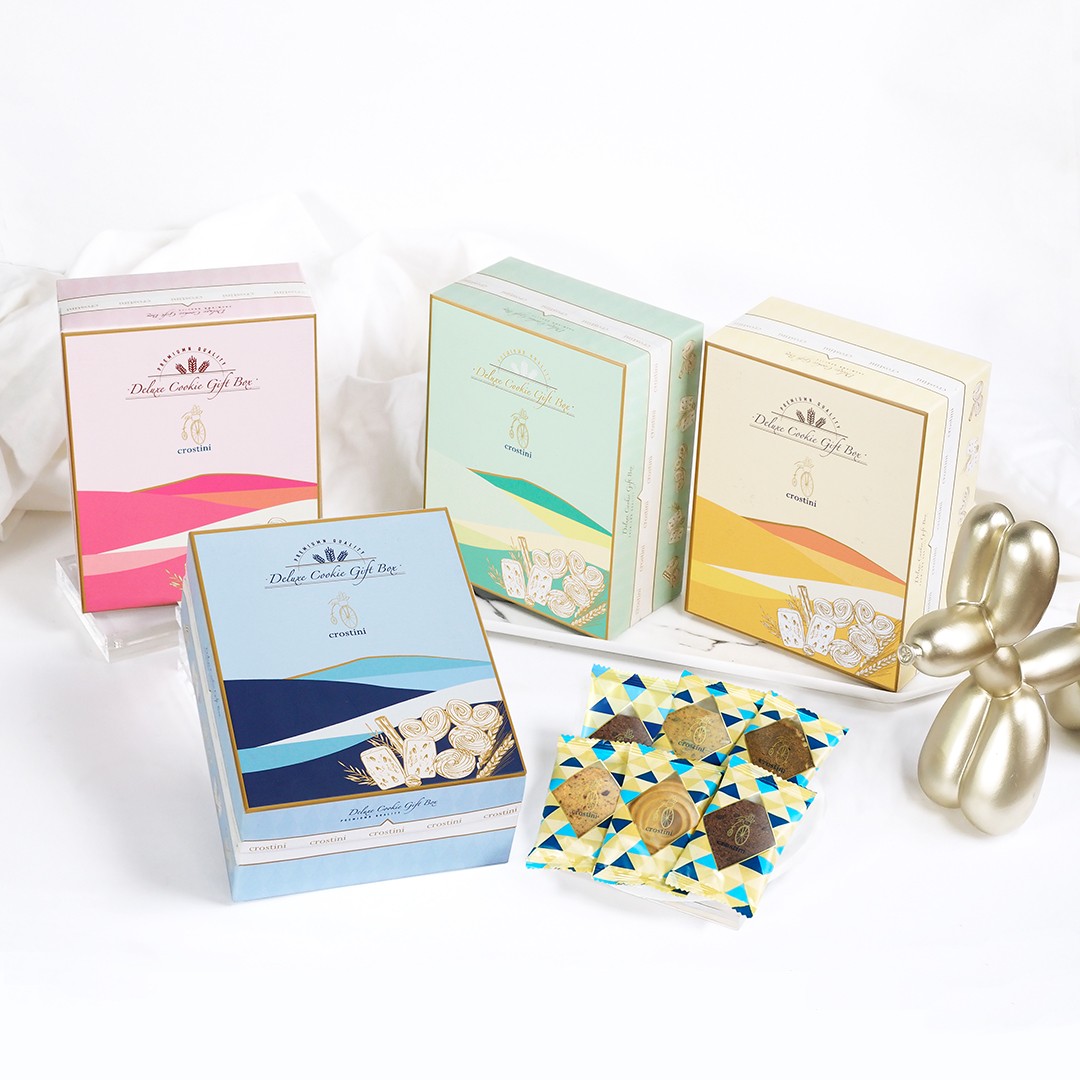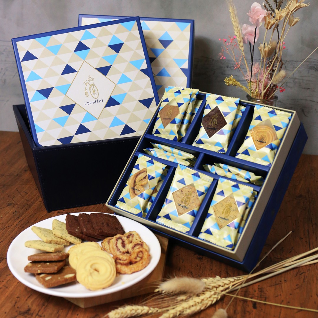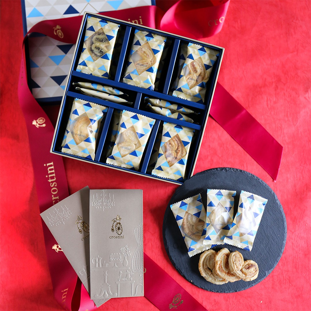 新年送禮想大方得體,除賀年糕點外,也可嘗試送包裝精緻的蝴蝶酥或曲奇禮盒,不會過於油膩又口味豐富,更可與親朋聊天時搭配茶葉享用,不論送禮自奉皆可。Crostini推出多款蝴蝶酥、曲奇禮盒,包裝設計精美,並有多款口味可供選擇,新春佳節送禮款客皆宜。