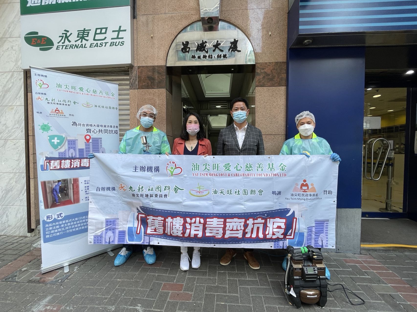 第五波疫情來襲,為齊心對抗來勢洶洶的新冠病毒,協助市民共同抗疫,油尖旺愛心慈善基金得到油尖旺民政事務處贊助,聯同九龍社團聯會油尖旺地區委員會及油尖旺社團聯會合辦「舊樓消毒齊抗疫」活動,為油尖旺區內眾多有需要的舊式大廈安排一次性噴灑消毒涂層服務,消毒範圍包括舊式大廈首層大堂、電梯內櫳及電梯按鈕,或單幢唐樓樓梯及扶手等較多人接觸的地方,噴灑消毒液後物件表面會形成抗菌抗病毒涂層,保護效力長達180天,有效減少新冠病毒在社區特別是大廈傳播的風險,保護居民健康。