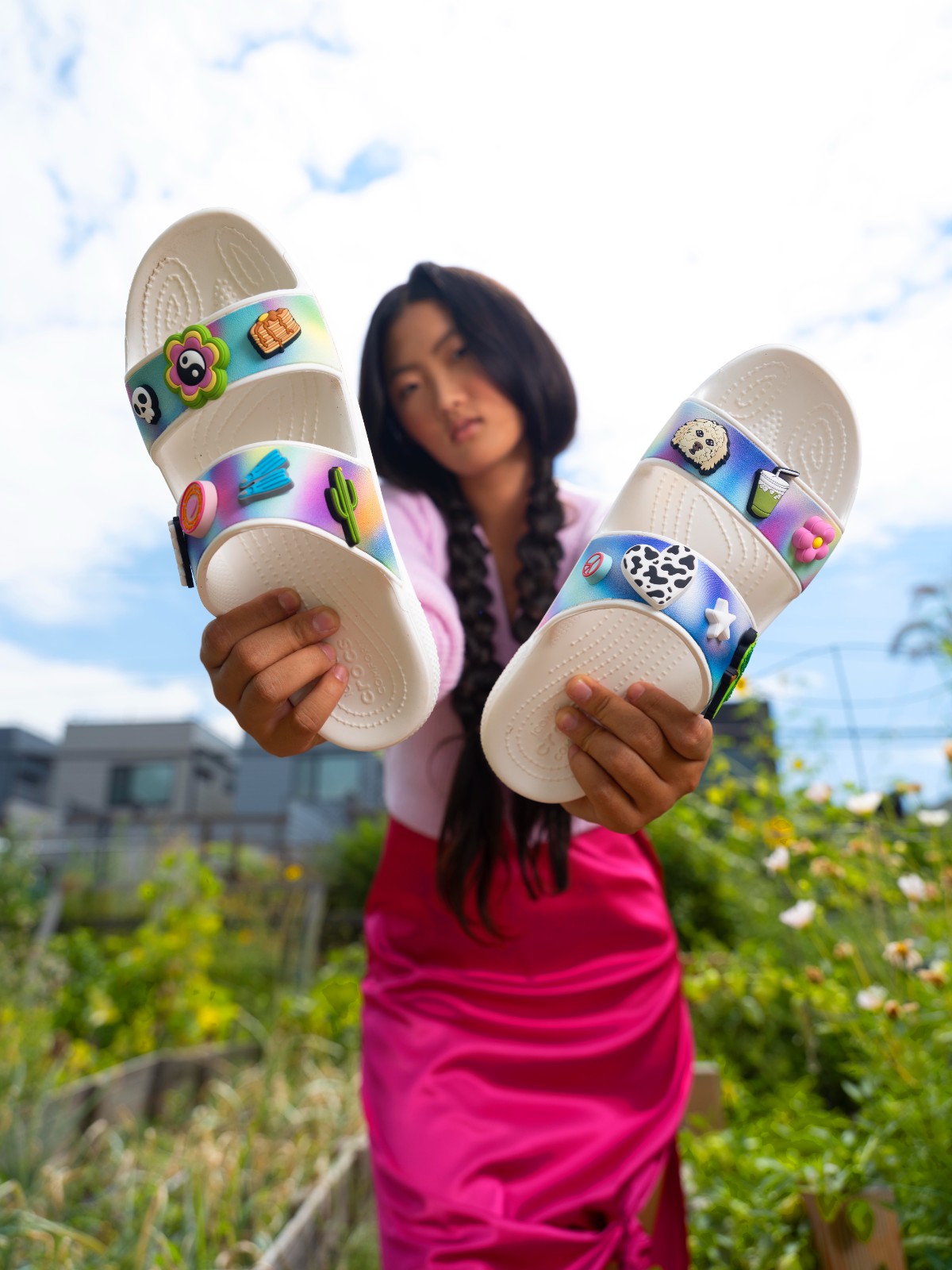 系列囊括品牌舒適感十足的3個鞋款,並帶來Jibbitz的LED Fun 5件套裝鞋飾(HK$35/$45 個),LED設計色彩繽紛,讓穿者為涼鞋和拖鞋打造獨一無二的個人風格。Classic Solarized Clog(成人 HK$468)把明亮的幻彩圖案與品牌招牌的舒適感結合,獨特的圖案利用深、淺兩種配色來襯托,彰顯個人風格。