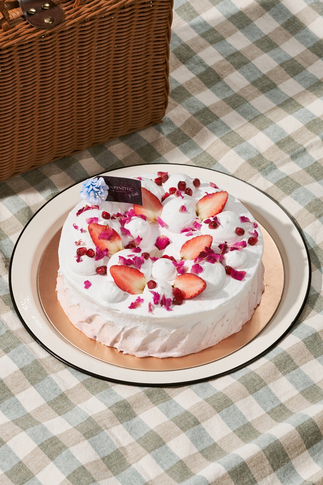 INFINITI C 無麩質純素加州士多啤梨紅絲絨蛋糕(8吋)(HK$910)。