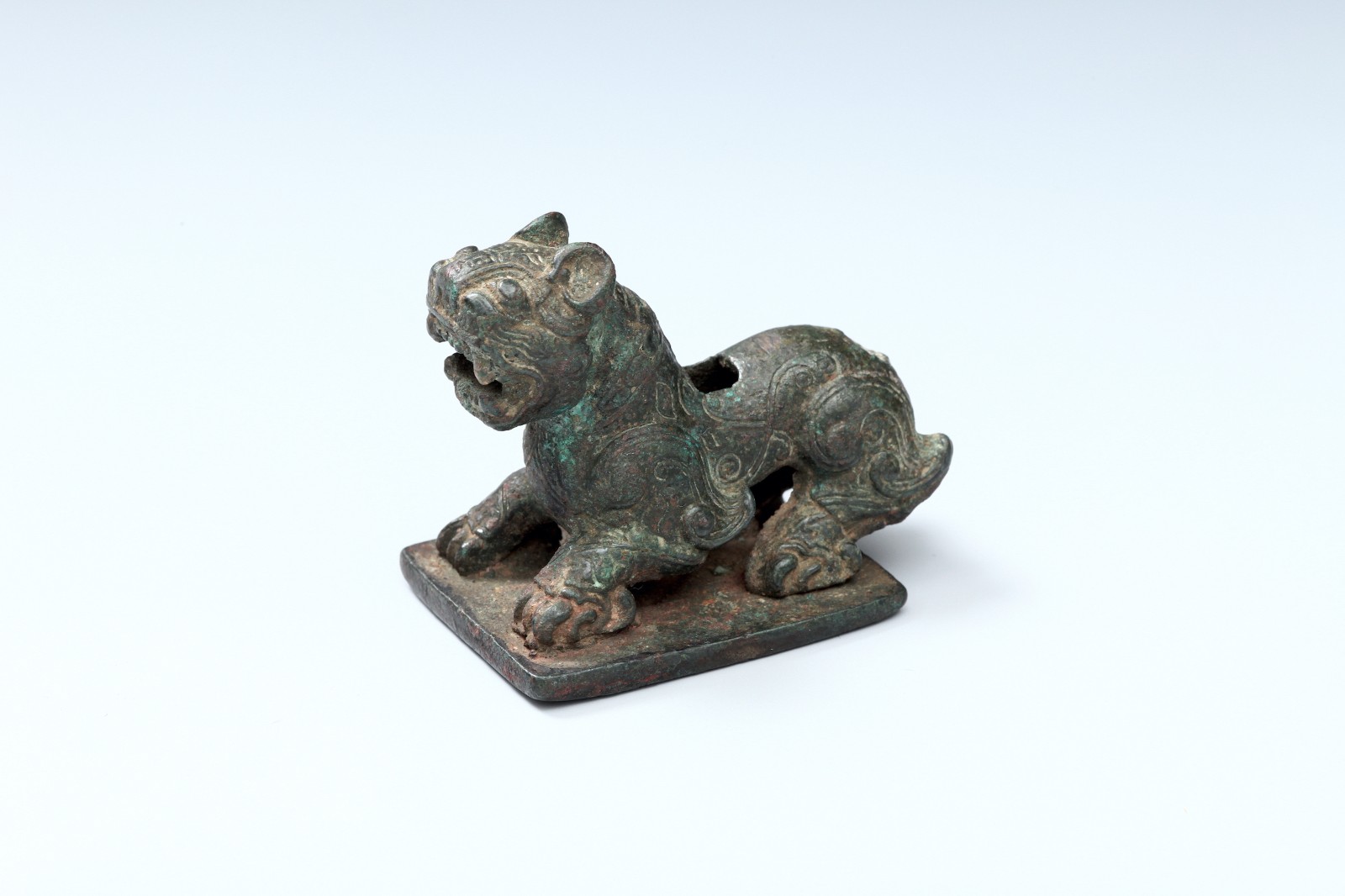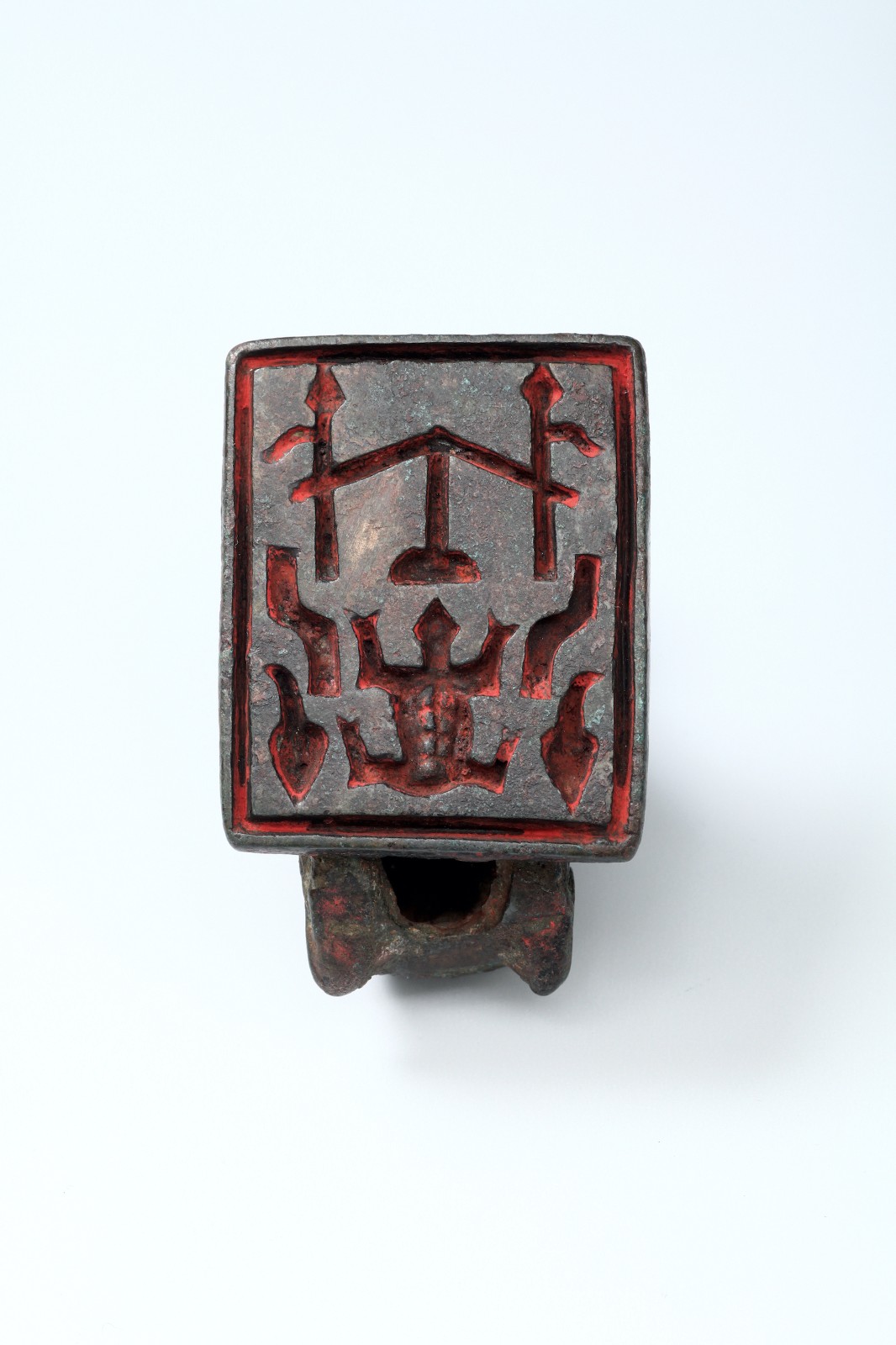 另一件罕見展品是戰國晚期的「銅虎鈕巴蜀印」,是本次展覽歷史最悠久的文物,四川的古代巴蜀地區尤其崇虎,當時的青銅兵器、樂器流行雕刻虎紋,印章也是巴蜀著名的出土器物,但虎鈕並非常見,此印虎鈕精美,更是少有。銅虎造型生動,紋飾細膩,可能屬部落首領所有。加上印文上的符號意義尚未破解,為文物增添幾分神秘色彩。