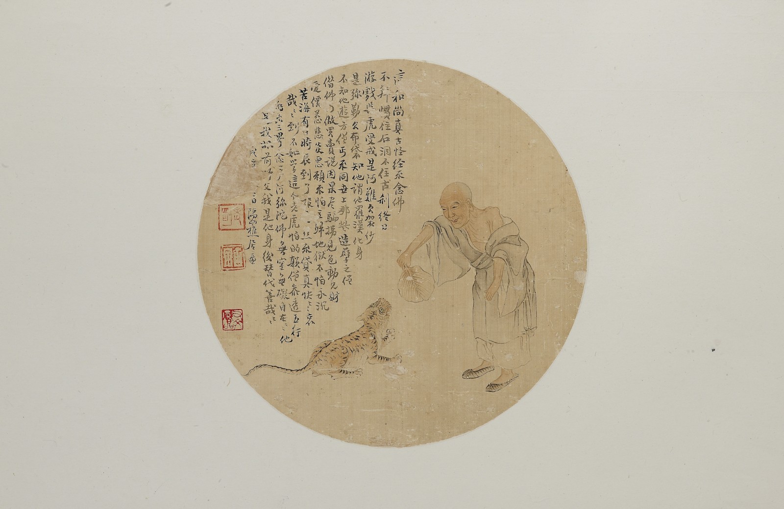 現代人看虎,可到動物園或在網上看圖,古人如何觀察老虎,進而繪畫創作?是次展覽策展人童宇在接受本報訪問時表示,清代之前的畫家會透過貓等貓科動物,想像老虎的形象。又或受神話故事影響,虎往往伴隨羅漢高僧和仙人,成為其法力神通的印證,如《伏虎羅漢》、唐代裴鉶《傳奇》等,因此古人畫家筆下的老虎會較溫柔可愛。