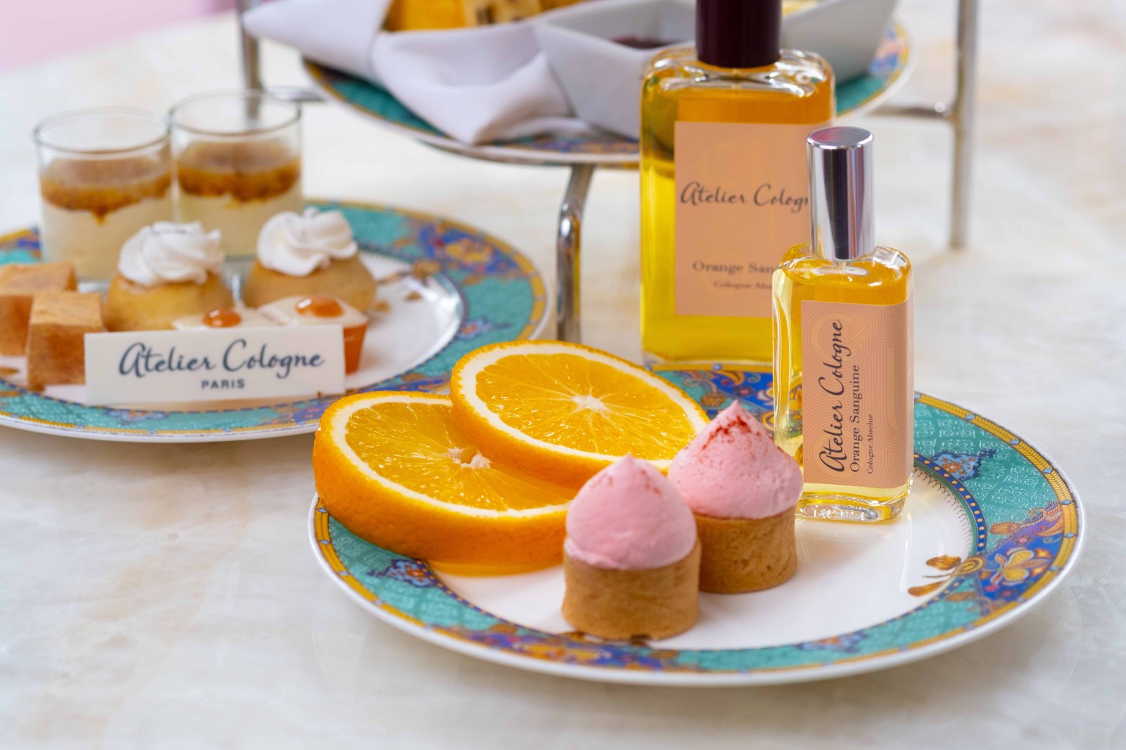 餐廳的廚師團隊根據品牌的標誌性香氛設計各款精美小點,透過視覺、味覺及嗅覺體驗不同的香氣。精緻甜點以時令食材及花材入饌,包括迷你烏龍茶巴巴及佛手柑忌廉、檸檬馬鞭草忌廉布甸配桂花蜜糖、桂花蕨餅及金光閃爍西柚果凍,靈感源自品牌的四款經典香水。「Oolang Infini 無極烏龍」以清幽烏龍茶香透出沉靜佛手柑,予人純淨溫柔感;「Orange Sanguine 赤霞橘光」由活力鮮橙沁入甜潤天竺葵和醇厚檀香木,氣味讓人不由自主展露會心微笑;「Pomélo Paradis 情柚獨鍾」將酸甜多汁葡萄柚撞上沁爽柑橘;「Love Osmanthus 桂香月夜」是金秋潤桂邂逅經典柑橘。