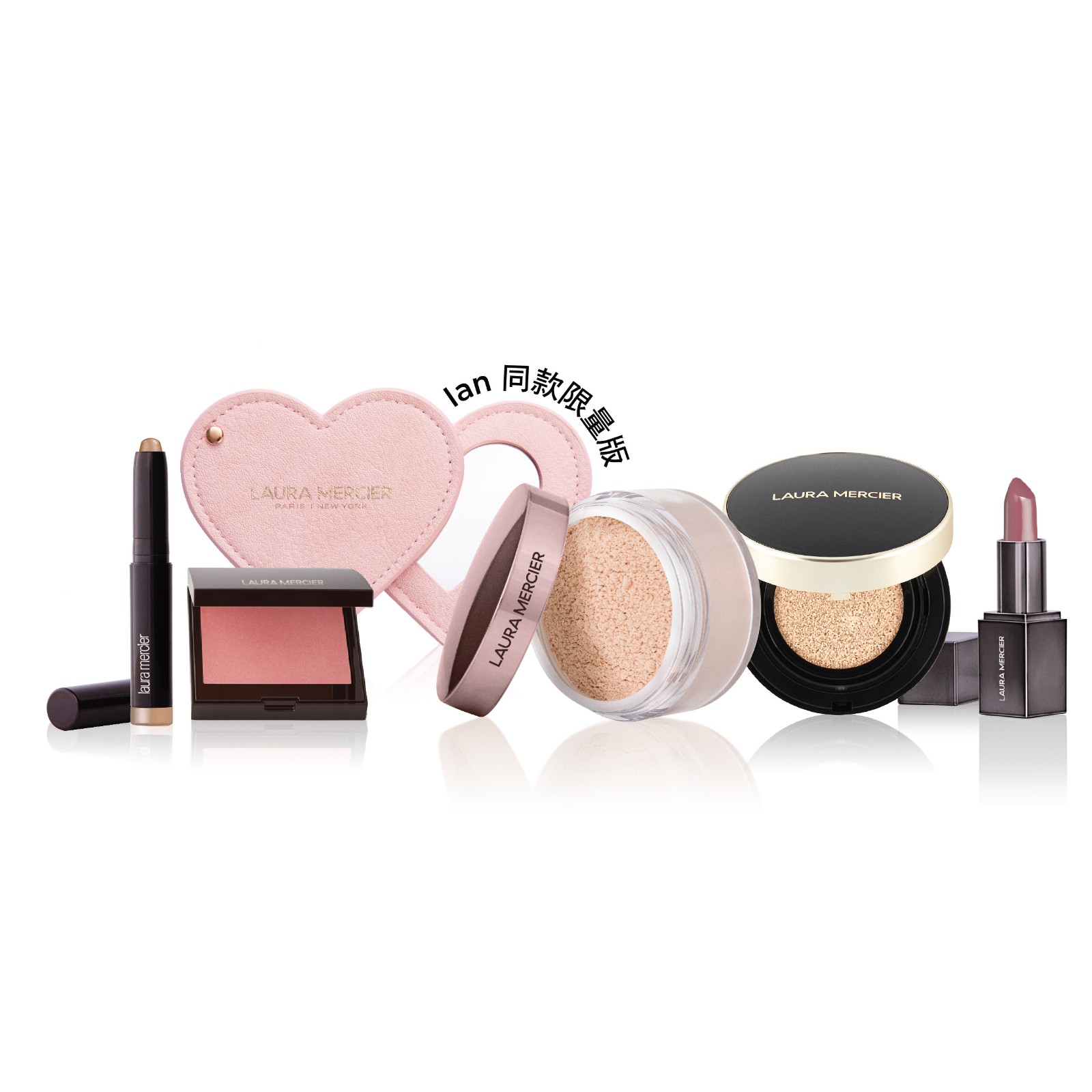 定格心動鑽光底妝套裝HK$820 (價值HK$1420,門市限定),包括粉嫩透亮蜜粉貨裝、極致持久鑽光氣墊粉底貨裝、迷你極致潤色胭脂、迷你幻魅眼影筆、迷你極致絲滑唇膏、Ian同款限量版心形鏡。