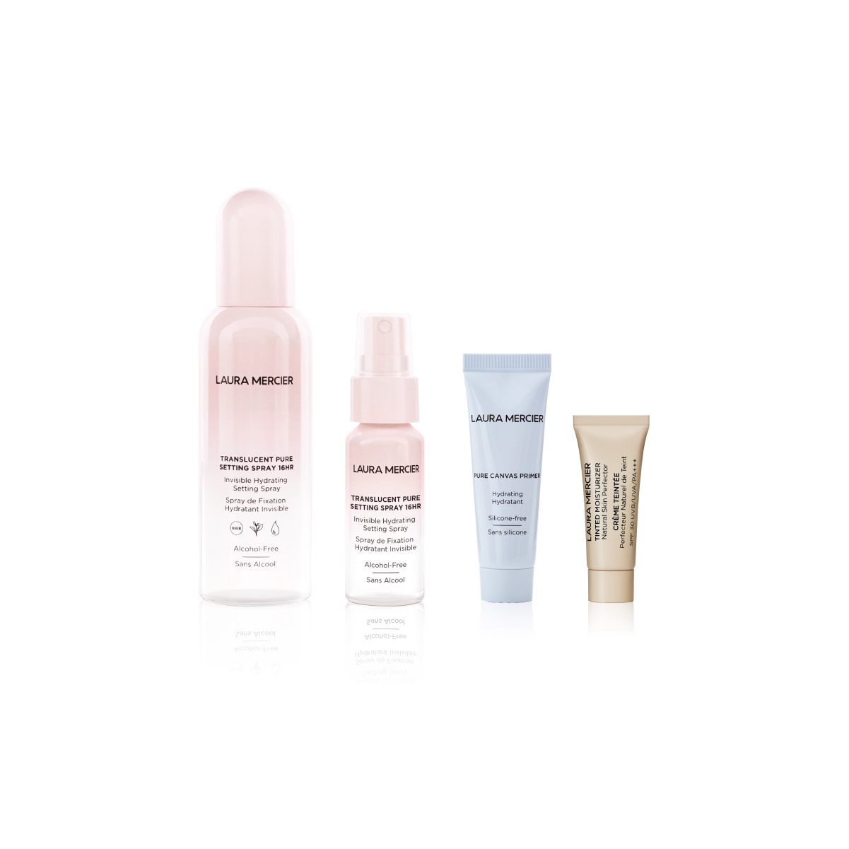 純淨輕感定妝噴霧套裝HK$520 (價值HK$645,官網獨家), 包括輕感親膚定妝噴霧 100ml貨裝及30ml貨裝、極致持久水凝潤澤妝前底霜10ml、輕透水凝潤色粉5ml。