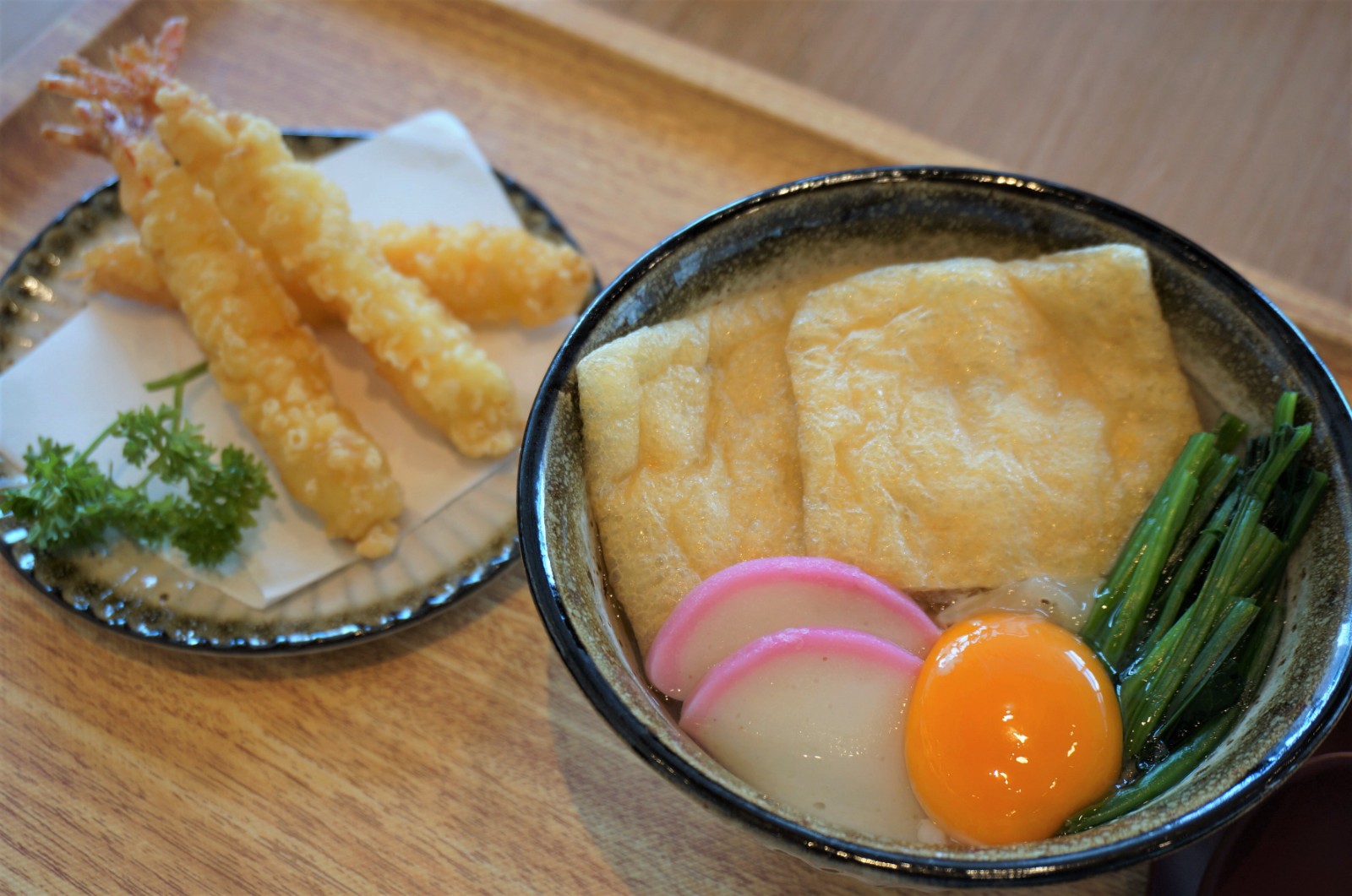蝦天婦羅配碁子麵(熱)(HK$82),配上蝦天婦羅金黃酥脆、味道鮮甜。