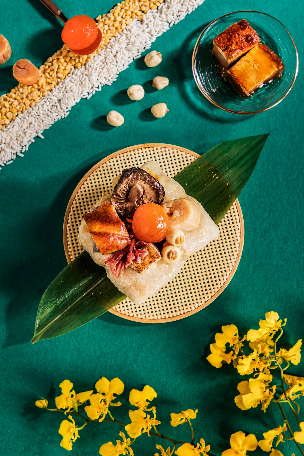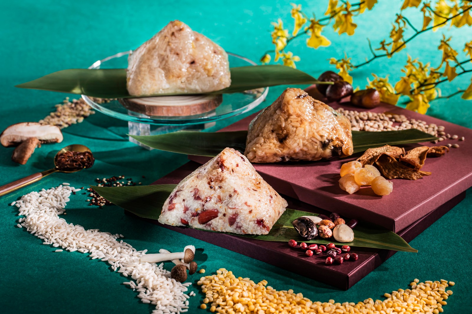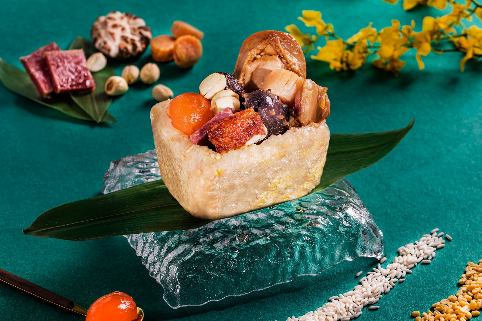 若喜歡傳統,每隻重600克的「至尊足斤裹蒸糭」適合一家人分享,糭子採用頂級挑骨腩肉,甘香鬆化,配合優質燒鵝肉、原粒瑤柱、冬菇、金華火腿、蓮子、栗子等多種傳統材料製作,用料上乘,打開荷葉時,香氣撲鼻而來。談及酒店的豪氣之選,非重量級的金裝佛跳牆鮑魚糭莫屬。以中國名菜佛跳牆作為靈感,餡料用上多款矜貴食材,包括原隻鮑魚、滋補海參、原粒瑤柱甫、冬菇、金華火腿等炮製而成,並特別以頂級挑骨腩肉代替傳統肥肉,帶來升級滋味。蒸煮後,食材鮮味共冶一爐,滲透糯米之中,將原盅佛跳牆完美變成特色的五月糭。 (記者:Janice)