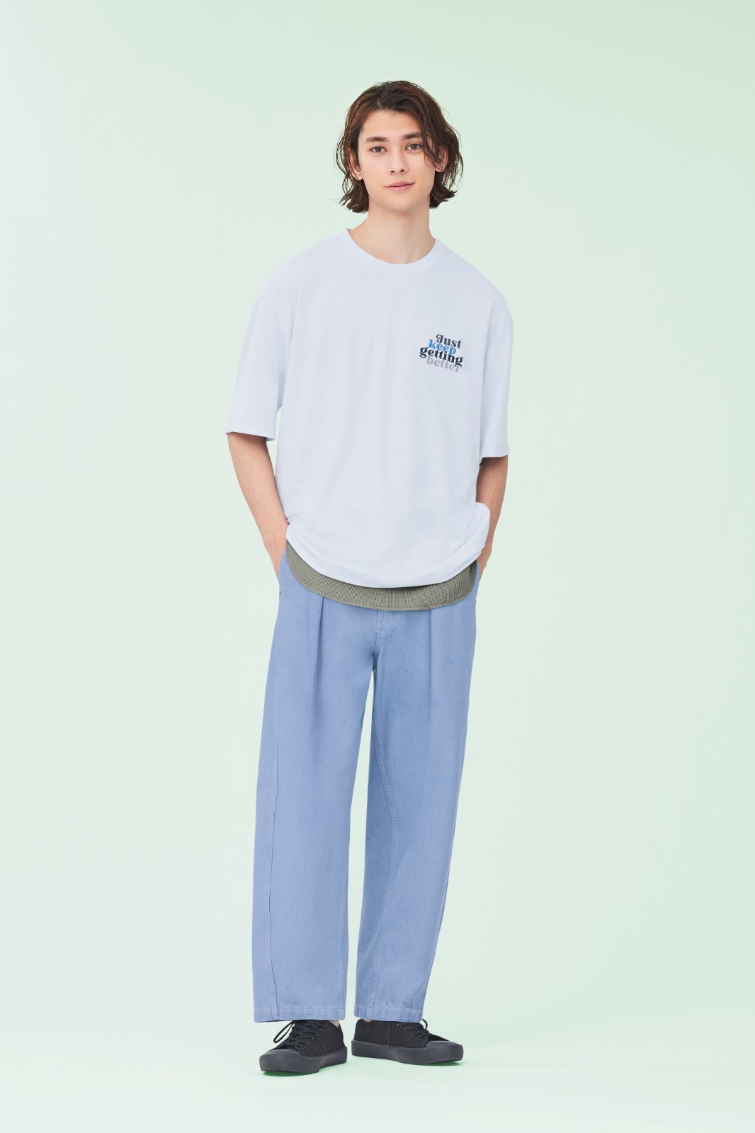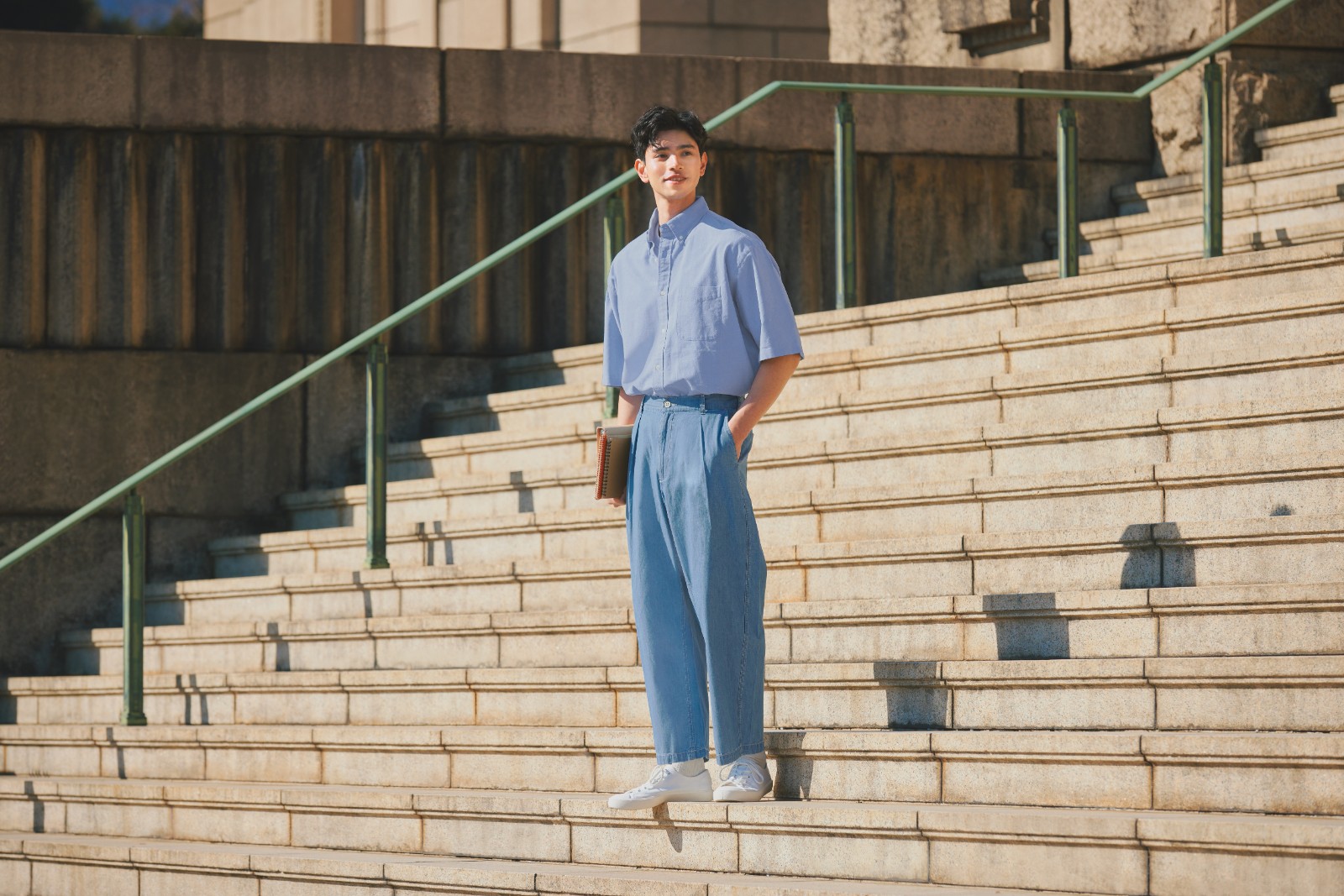 男裝 LIGHT DENIM CURVE TUCK ANKLE PANTS,HK$149 (原價HK$179)。
