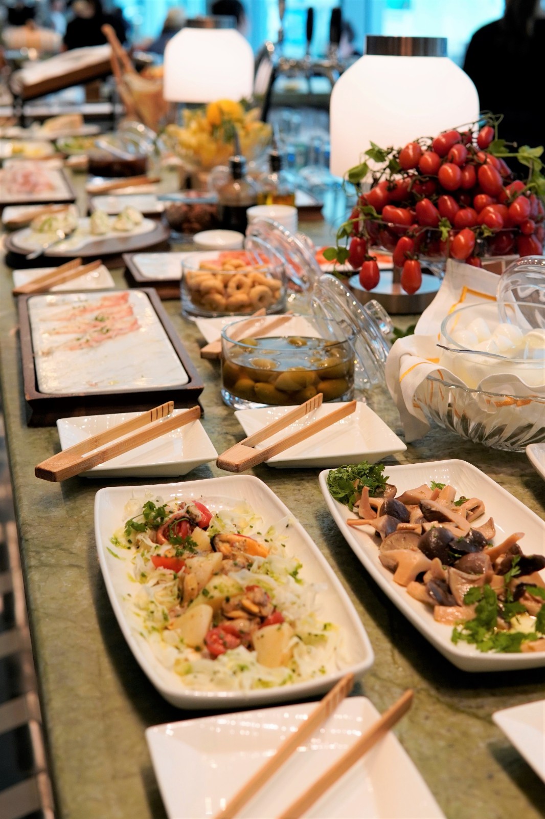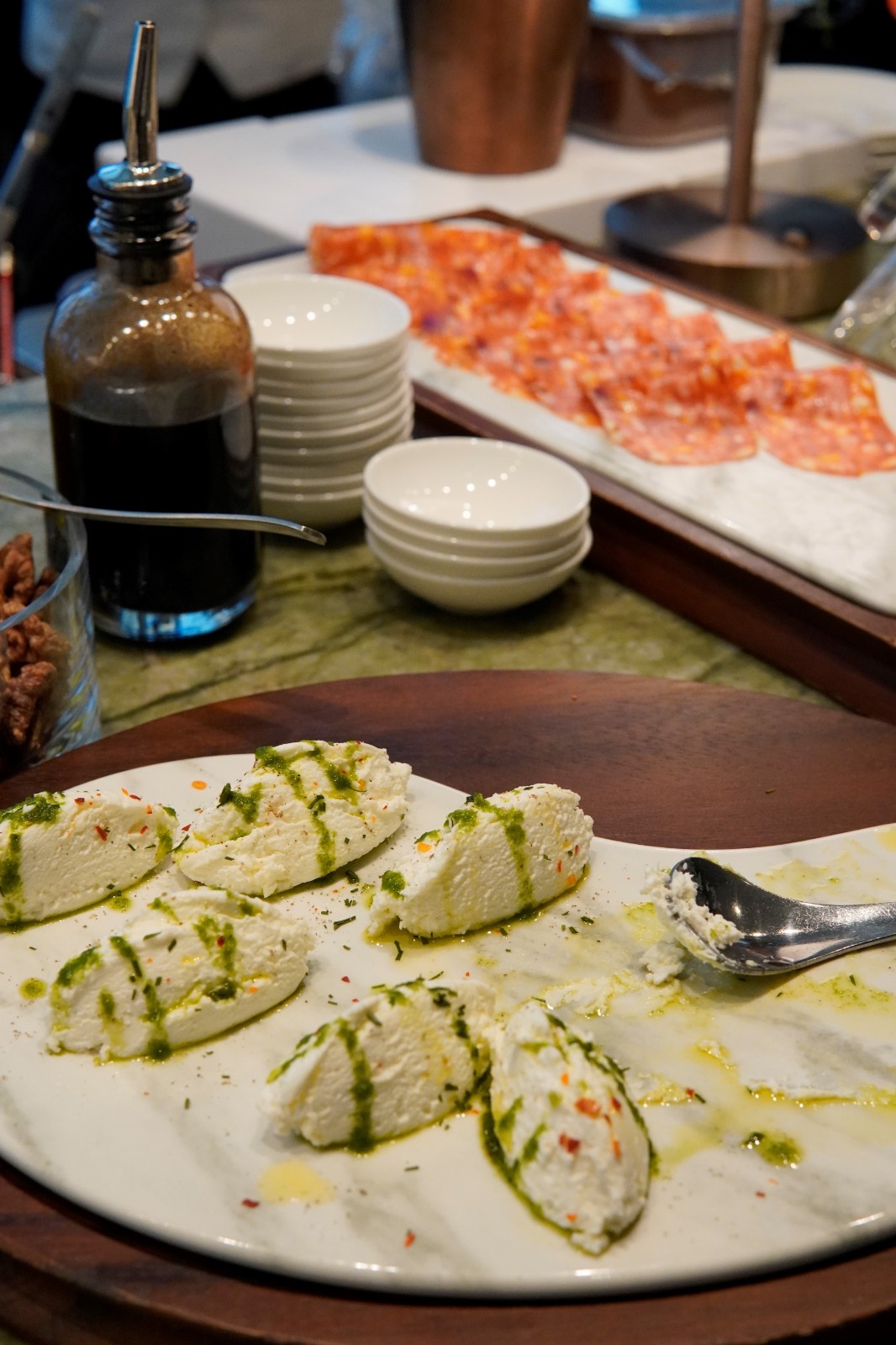 餐廳主廚Francesco Gava出生於意大利皮埃蒙特,堅持選用當地原產的頂級食材,並會以現代手法烹調意國傳統菜式,呈獻簡單而正宗的意大利美饌。周末早午餐以半自助形式進行,分為開胃自助餐、分享餐桌、熱開胃菜、主菜和甜品共5個部分。食客首先可盡情享用意式經典頭盤兼暢飲香檳與雞尾酒,頭盤選擇豐富,有多款芝士、凍肉、開胃菜選擇,如醇厚的意式火腿、鹹香的辣肉腸,又有細滑柔軟的巴馬臣芝士、清新軟滑的布袋芝士。