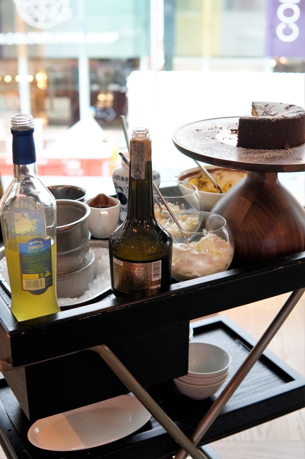 店內提供5款主菜,有自家製意粉、肉眼扒、意大利雲吞和意大利飯等。筆者推介美國肉眼扒配火箭菜及陳醋,牛扒外層微焦,切開肉質粉嫩肉汁豐富,且牛味濃郁。品嘗過豐盛的鹹點後,當然要照顧「甜品胃」,店員會推著甜品車出來,選擇不算多,有招牌的意大利芝士餅、卡普里蛋糕和意大利雪糕共3款,卻均是意大利地道的樸實風味,特別是卡普里蛋糕,口感紮實,甜而不膩,並帶有檸檬酒香氣,為早午餐畫上完美句號。 (記者、攝影:Janice)