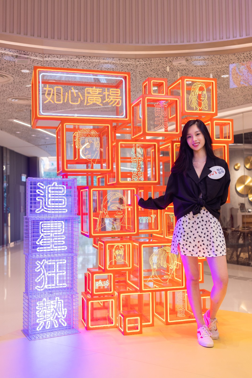 香港流行音樂的復興不但帶來一首首耳熟能詳的廣東歌,更因追星文化而衍生不少追星潮語,包括「前夫」、「鏡粉」、「走先啦」、「siu4」(「笑死」的諧音)及「mm7」(「正」字的速成碼)等。商場特意以追星潮語及一眾人氣明星和偶像的頭像,打造出充滿香港特色的幻彩招牌燈飾,除寓意與歌星的璀璨光芒互相映襯外,充滿本土特色的潮語亦與代表本土地道美學、香港街頭的燈飾招牌互相呼應,是一個既夢幻又別具香港特色的打卡位。