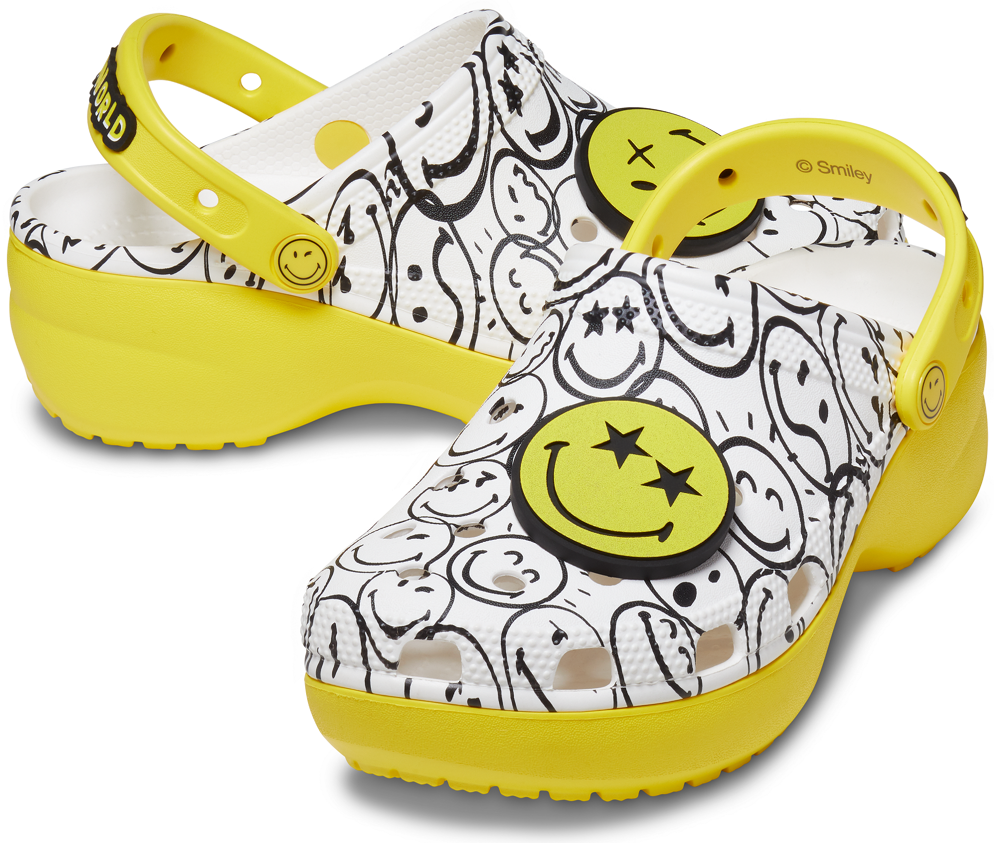 品牌與SmileyWorld再度聯乘,在最新系列中特別寄語「笑迎美好每一天」。此系列每對鞋上均設有兩個特大笑臉標誌鞋飾,及迷你笑臉作後跟帶兩側點綴,而鞋面亦滿載笑臉印花設計。此外,鞋面和後跟帶亦可定制個人化Jibbitz鞋飾,彰顯獨特風格。今次聯乘共推出兩個富趣味的款式,包括鞋底增加41毫米(1.6吋)厚度的Platform Clog,黃色泡沫鞋墊採用360度Iconic Crocs Comfort技術,提供輕巧、靈活和360度舒適度。採用了品牌專利技術Iconic Crocs Comfort的Clog則靈活輕巧,親水且有浮力,配上旋轉式的後跟帶,令每一步都穩妥舒適,又充滿玩味感。 (記者:Janice)