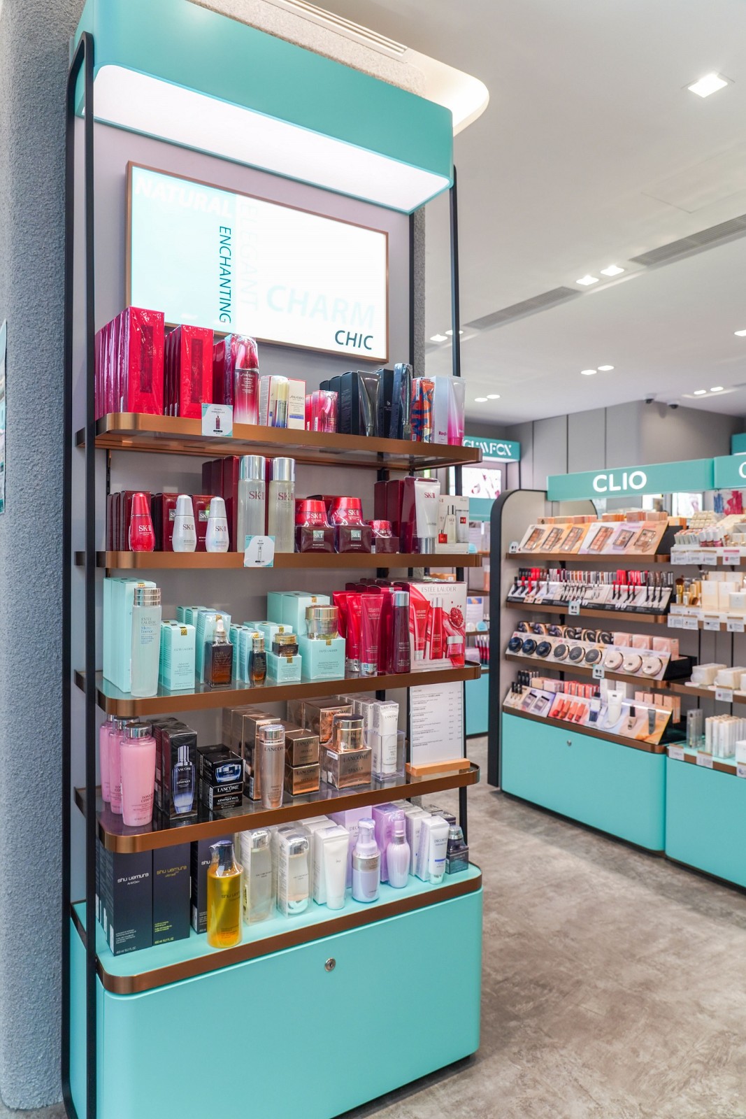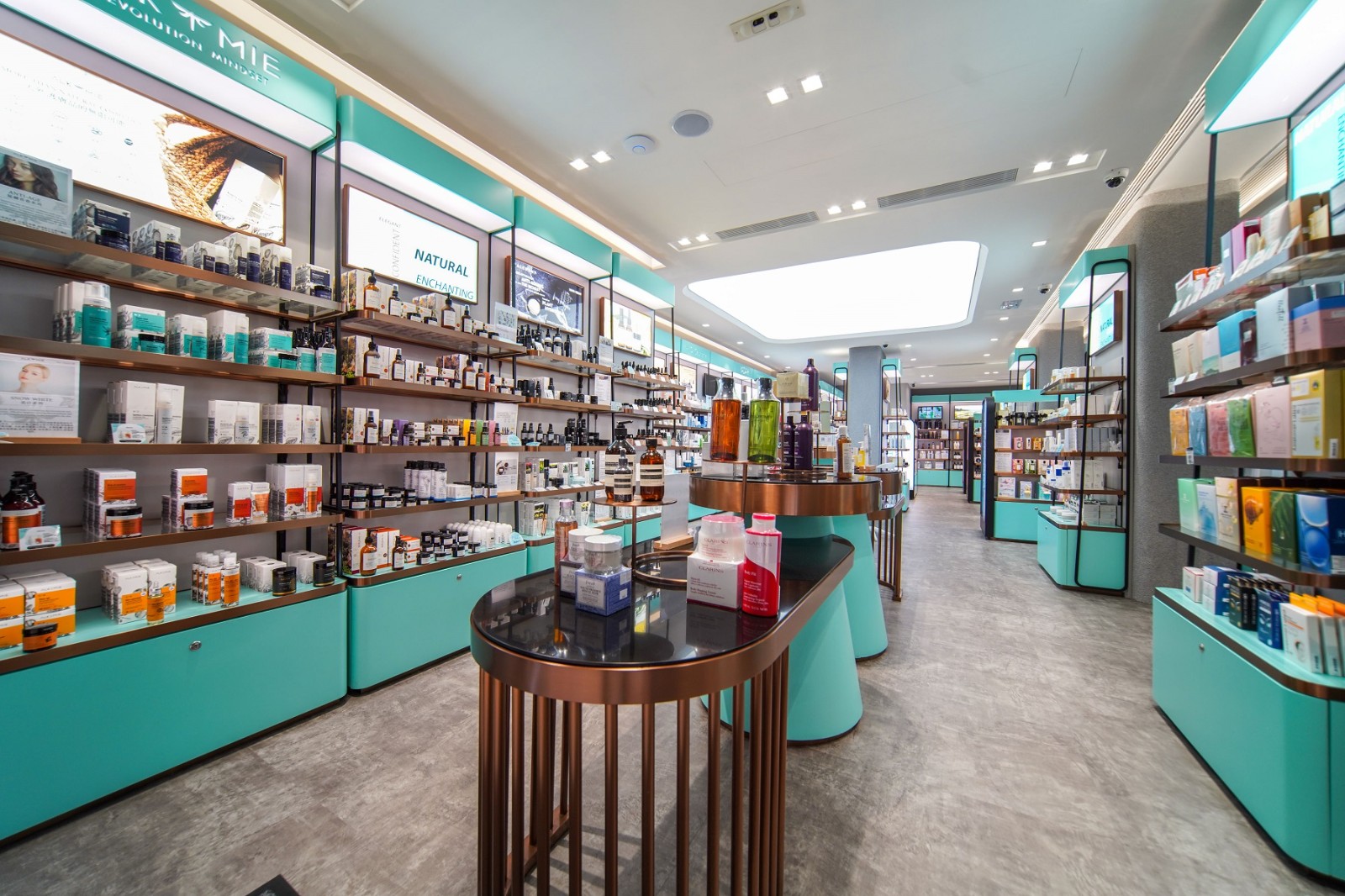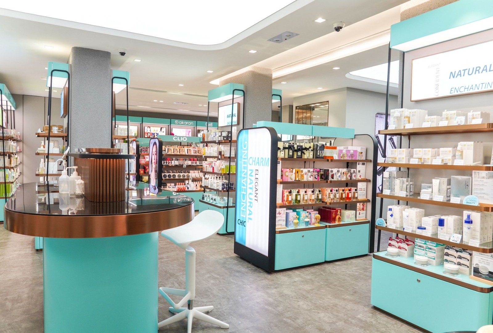店舖有別於傳統美妝店,空間寬敞簡潔的購物。