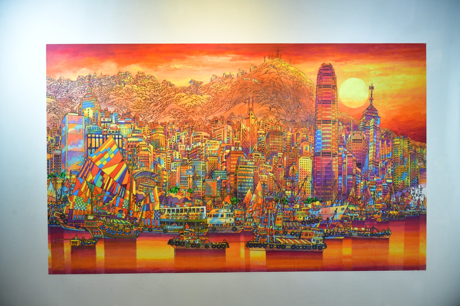展場展示多位香港、內地畫家的巨幅水墨畫作。