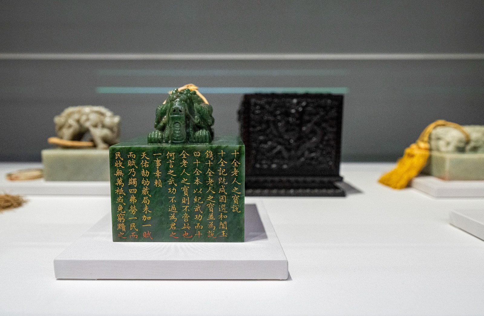 在參觀時可以留意清朝乾隆皇帝的種種「足迹」,不但可以在「紫禁一日——清代宮廷生活」展廳中近距離觀賞到他的御用之物,例如龍袍、玉璽等,更可以在「國之瑰寶——故宮博物院藏晉唐宋元書畫」中看見他在清宮珍藏的字畫上蓋下的印章。根據《乾隆寶藪》,對漢文化及藝術有?極致追求的乾隆帝,一生擁有1800多枚璽印,是祖父康熙帝的15倍、父親雍正帝的11倍,這些寶璽或用於御筆書畫落款,或加蓋於清宮收藏的書畫典籍,讓乾隆成為名副其實的「蓋印狂人」,其「乾隆御覽之寶」的印文可見於王羲之的《快雪時晴帖》、宋徽宗的《瑞鶴圖》等國寶級書畫作品之上。有不少人認為乾隆這種在文物上滿蓋印章的行為,是對頂尖級別書畫的「褻瀆」,破壞了畫面整體的美感。然而,筆者卻有不同看法。一方面,加蓋了乾隆御覽標識的作品,能夠體現清廷文化的繁盛,以及弘曆本人的藝術品味及審美水準,對於後世研究清朝文化及乾隆本人有積極的作用;另一方面,印文是古籍書畫曾經被納入皇家珍藏的重要證明,在研究及辯證文物的真偽或斷代之時,亦是重要的參考信息。