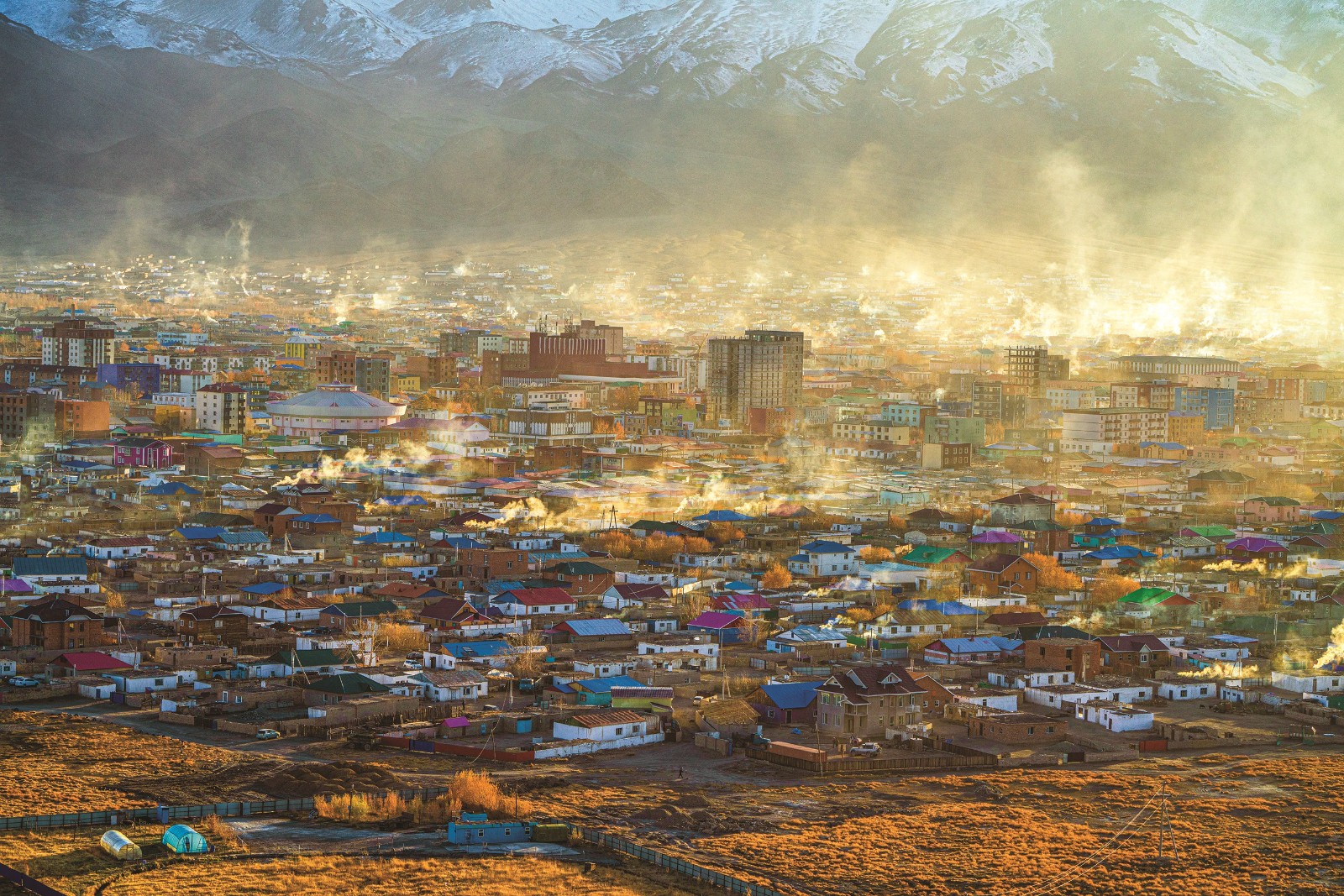 是次李秀恒的新書,相信不少人被封面吸引,裊裊升起的炊煙裏,展現一座城市的生氣,卻沒有大城市的喧囂與繁雜。所拍攝的風景正是蒙古國21個省中的巴彥烏勒蓋省,該省是蒙古國中唯一一個以哈薩克族穆斯林為主的省份,建於1940年,位於蒙古國西部邊境。李秀恒分享:「很多人以為蒙古國的景色是『風吹草低見牛羊』,但其實當地難以看見這樣的情景,反而塵土飛揚,污染厲害。該國以羊毛羊絨為主要出口,養殖不少山羊,破壞了當地草地生態。」在其不少作品中都能看見馬群揚起黃沙滾滾的場景。