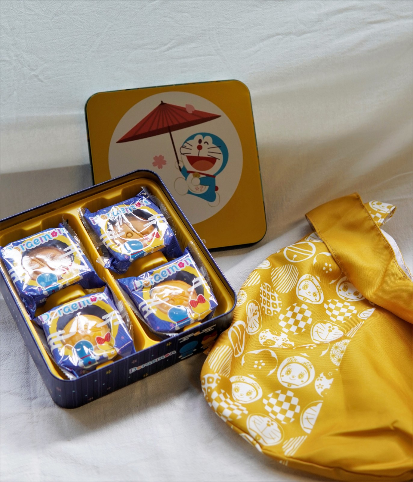 在多款月餅中,東海堂的月餅非常搶眼。「花月賞味」禮盒是品牌首度與日本設計商SOU・SOU聯乘推出,盒內分兩層,一層是可愛的兔子奶黃月餅,另一層是人氣北海道3.6牛乳蛋白卷及經典香濃牛油蛋卷,並配有兩款日本直送的天上紅茶和綠茶甘夏茶包。月餅外皮酥香,包裹着濃濃椰香,配上一杯熱茶及蛋卷更是完美。另外,購買指定月餅禮盒券2張,即送贈1套聯乘餐盤組合,「多啦A夢」月餅禮盒上有凹凸效果的多啦A夢頭像,配上日系花紋襯托,格外精致。月餅以小鈴鐺造型設計,包含味道溫和而清甜的奶黃及豆香濃郁、香甜的十勝紅豆粒口味。隨禮盒並附送和風感布袋,可作為小型收納袋使用,肯定俘虜大小朋友的歡心。