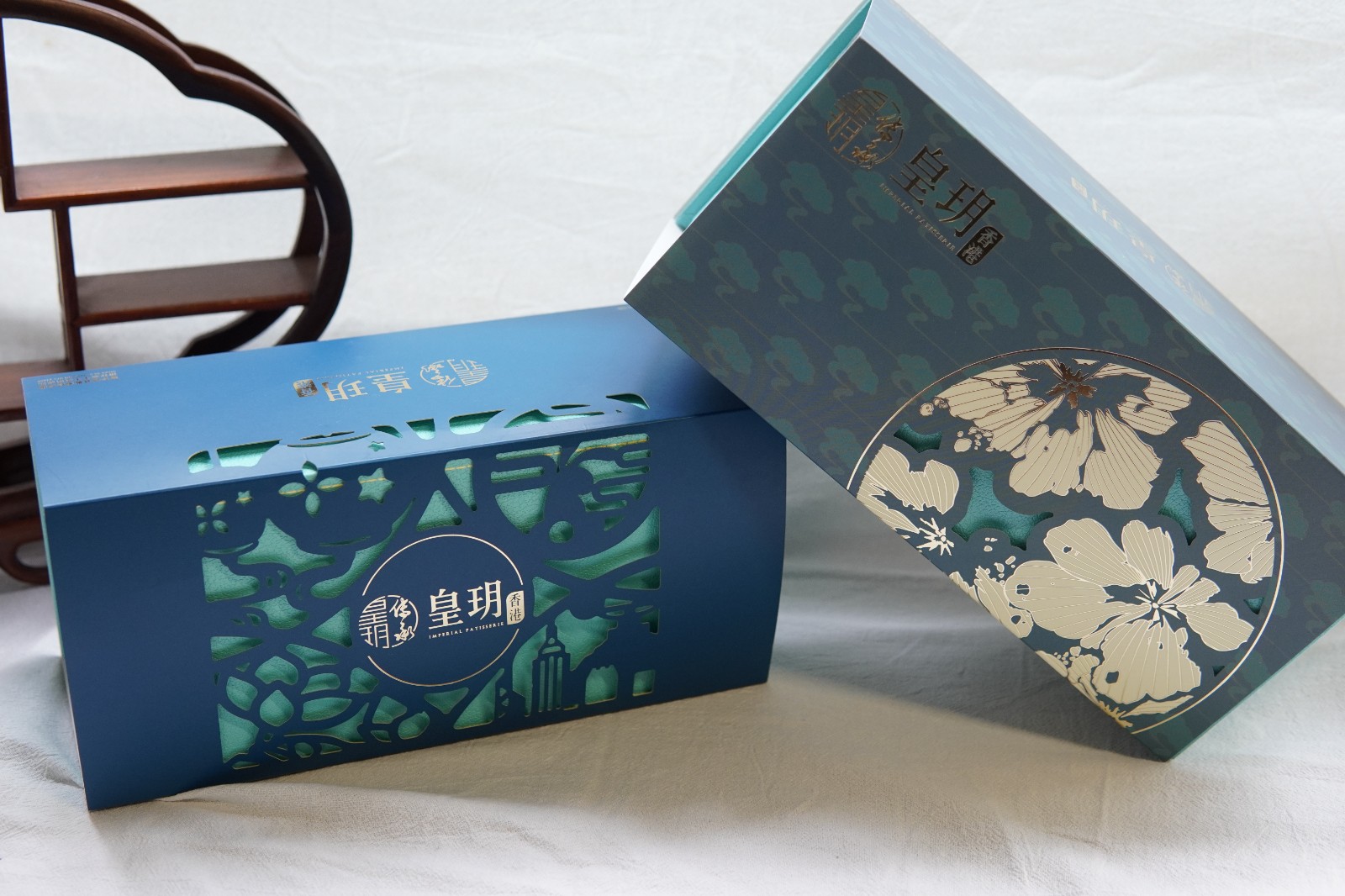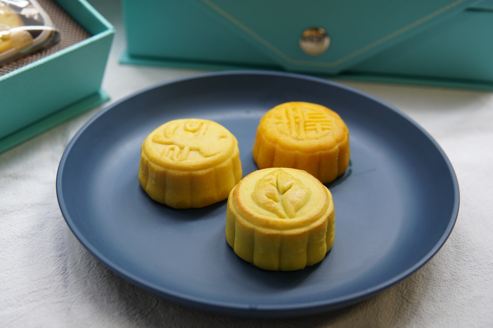 香氣馥郁的榴槤是不少人的心頭好,市面有不少榴槤月餅,卻少見將奶黃與榴槤融合的。皇玥流心貓山王榴槤月餅切開能看到被奶黃包裹的新鮮果肉,淡淡的榴槤飄香,讓人食指大動。注重健康人士則推介低糖碧綠雙輝月餅,內裏包含低糖奶黃及低糖綠茶月餅,甜度大大減低外,口感仍軟滑,充滿牛油香氣。禮盒是全手工紙皮盒,外表是充滿質感的皮革紋理,邊緣設有整齊車線點綴,時尚的青瓷綠及天空藍優雅大氣,送禮體面。