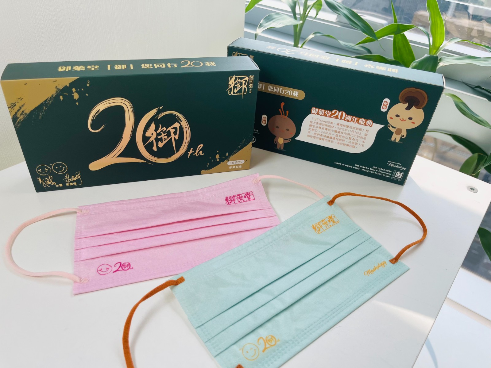 品牌以推出限量版口罩作為20周年慶祝活動頭炮,用「貼地」的方式守護港人健康。口罩由米雪和苗僑偉設計,兩人挑選了笑臉作主軸,苗僑偉版口罩靈感源自「培植蟲草菌絲體Cs-4」,亮綠色搭配寓意蟲草的橙色,型格中帶有清新的感覺。而米雪版則選用嬌艷的粉紅色,寓意將愛帶給大家。