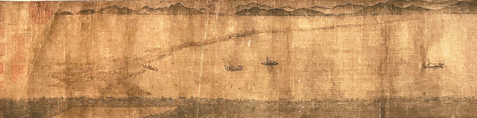 李嵩作品《錢塘觀潮圖》(局部)。全卷17.4×83cm。(Shirley攝)