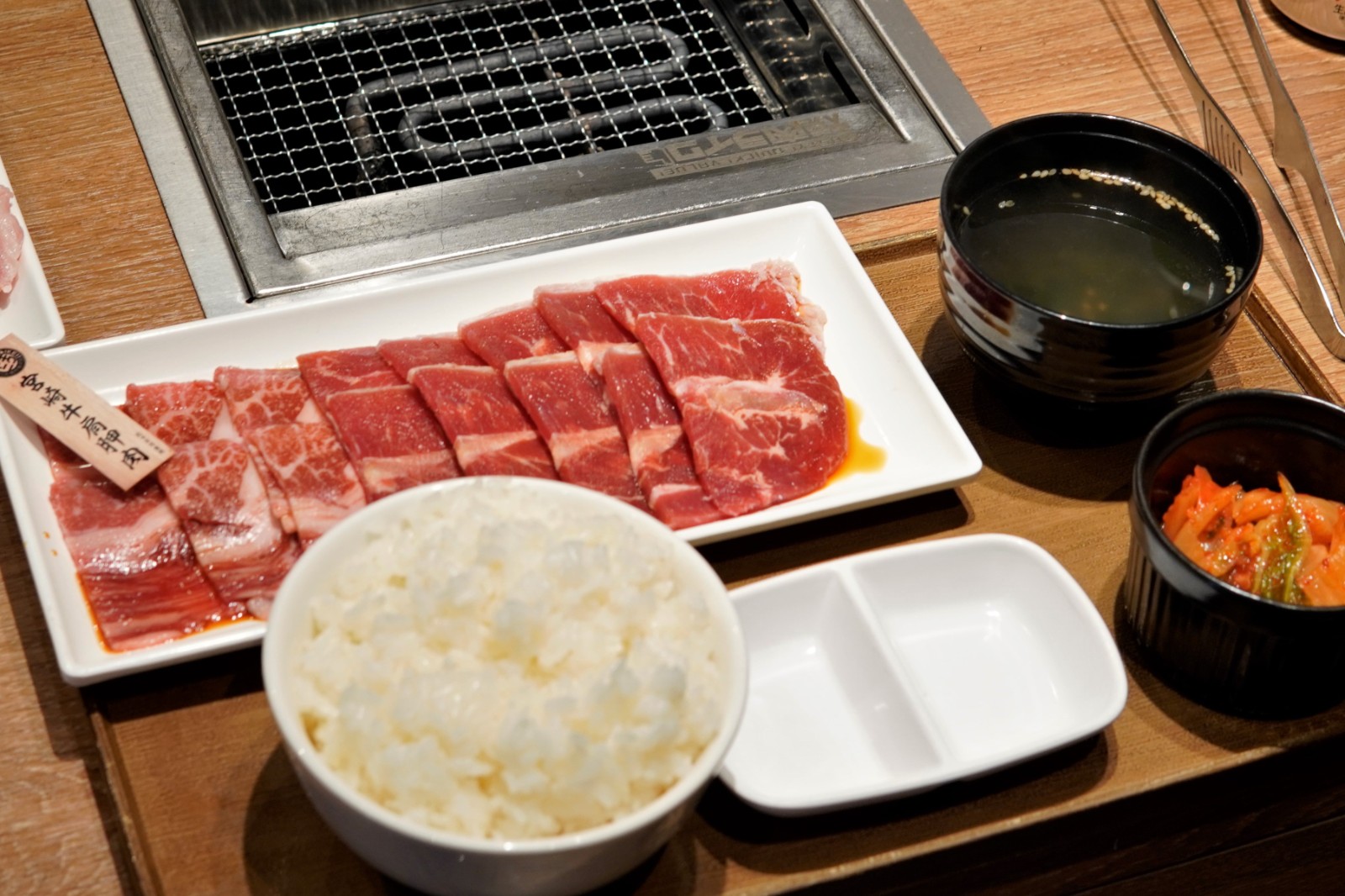 「宮崎牛肩胛肉」套餐(200克),配白飯、和風湯,並可選泡菜或迷你沙律,HK$138(100克)、HK$235(200克)。