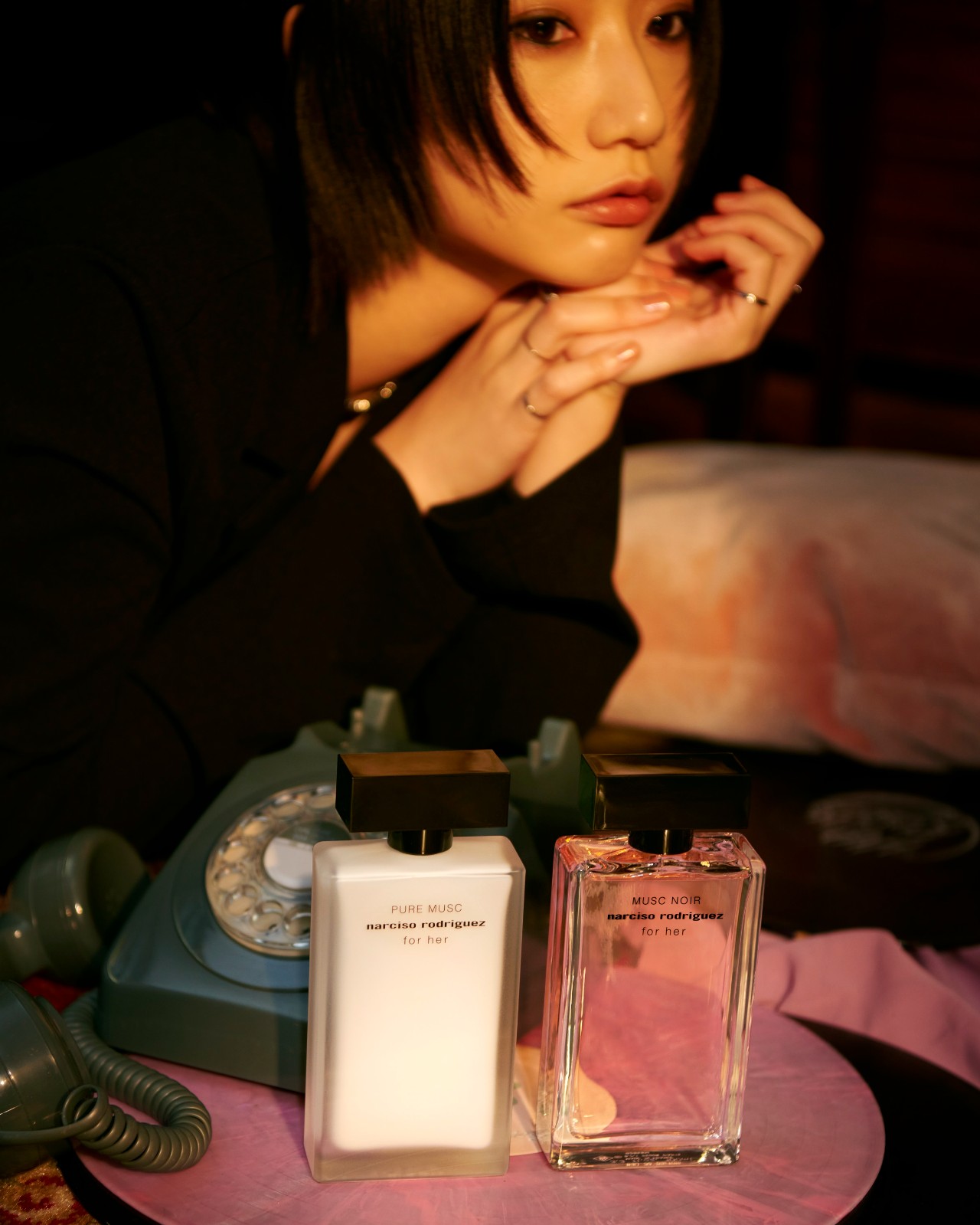 不想與他人撞香水?不妨自己混香,把想疊加的香氣依次序噴於身上,將香味重疊糅合,從而搭出自己的香味。narciso rodriguez的經典麝香香氣能反映每個人的獨特個性,與使用者的肌膚結合,自然融入肌膚一部分。麝香香氣亦能與品牌的for her香氛系列融合,打造出專屬於個人的標誌性香氣,成為自己的調香師。