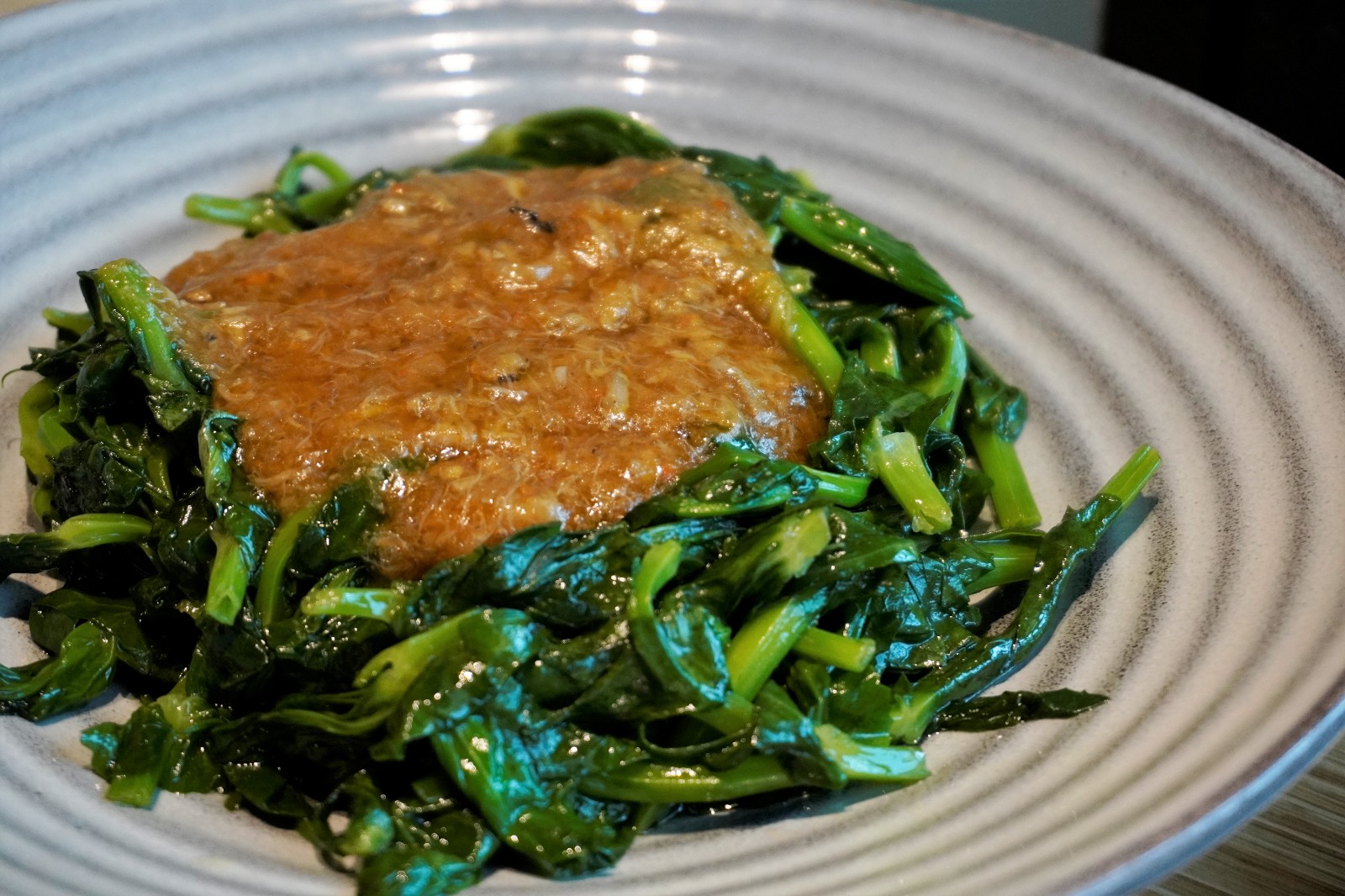若想吃滿滿蟹粉,推介「蟹粉豆苗」,秋冬之豆苗為蔬菜界「上菜」,與蟹粉一拍即合,廚師採用傳統手法,選豆苗鮮嫩部分加以快炒,最後舖上1.5両蟹粉,為豆苗加添油香,讓不愛吃豆苗的筆者都吃多幾口。京滬名菜「賽螃蟹」,廚師花費心思創作「芙蓉蟹粉蟹肉賽螃蟹」,菜式先將蛋白快炒至順滑軟嫩,再加上蟹粉、蟹肉、蟹籽,並以蟹蓋盛載,滿口盡是鮮甜的蟹肉和油潤的蟹黃,是味覺與口感的雙重享受。主食方面則有「鮑魚蟹粉撈飯」,蟹粉配以充滿鑊氣的炒飯,手法創新。粒粒分明的炒飯配上蟹粉及軟滑彈牙的紅燒鮑魚,口感層次豐富。