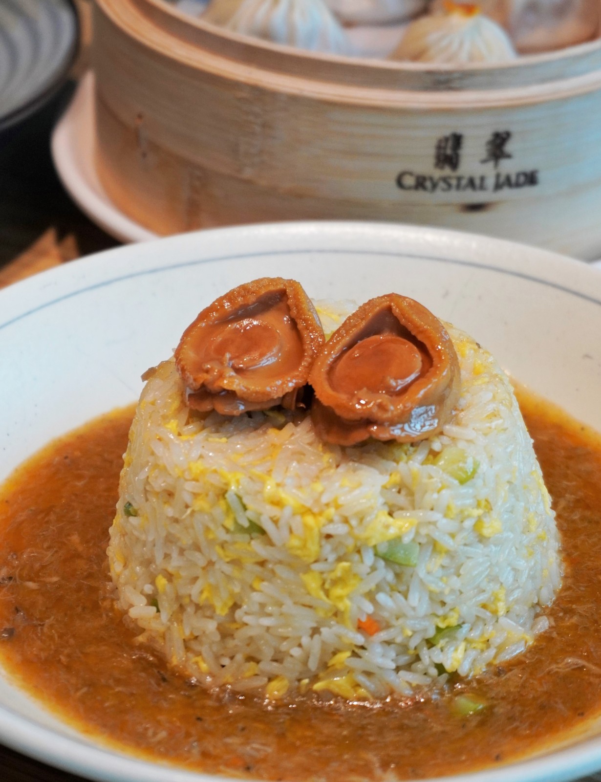 鮑魚蟹粉撈飯,HK$158。炒飯圍着一圈蟹粉醬,十分足料。